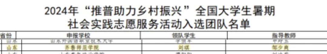 近日,教育部发布《2024年“推普助力乡村振兴”全国大学生暑期社会实践志愿服务活动入选团队名单》,从6998支高校实践团队的申报材料中遴选出1200支队伍。美术学院有1支队伍成功入选。