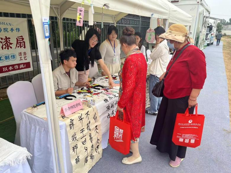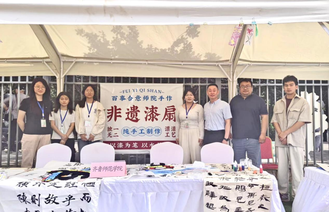 美术学院为培养大学生创新意识、创意思维、创业能力以及团队的协作能力,展示美术学院专业教育方面的成果,由肖潇等五位学生带着非遗漆扇、书签和书法创作等作品在文化艺术节上展示给与会观众,激发现场游客的对于中国传统文化知识的兴趣。本次活动既锻炼了学生的创新创业意识和团队协作能力,也展示了学校基于OBE理念下的第二课堂教育实践建设成果,提升了齐鲁师范学院对外的影响和宣传。