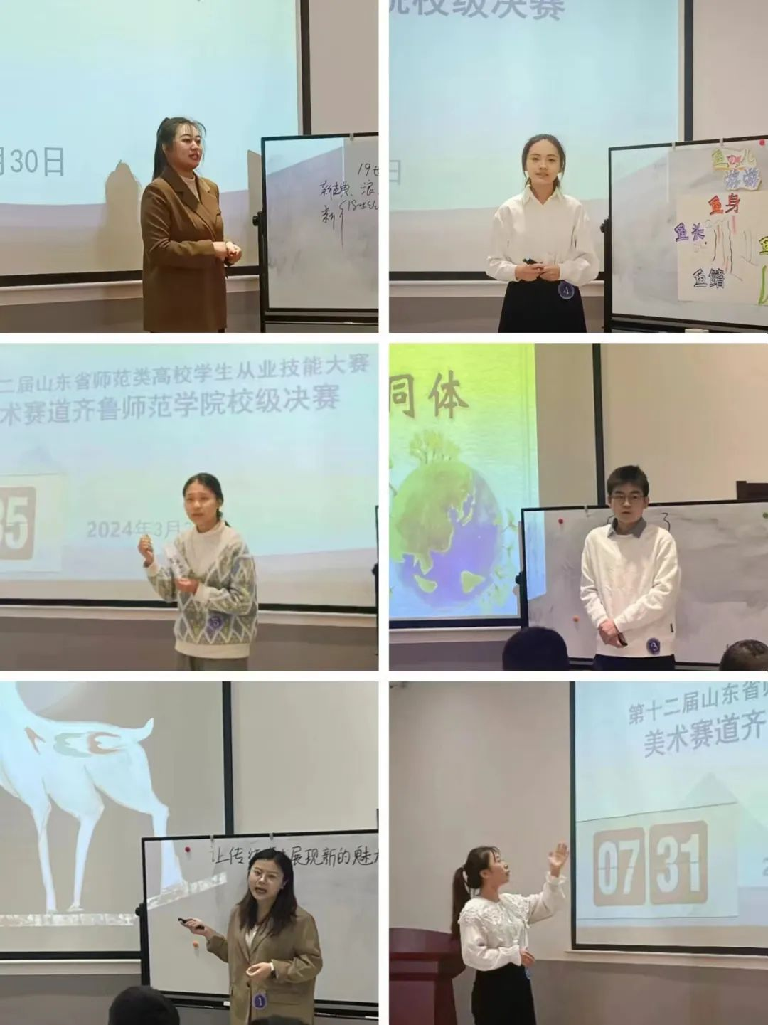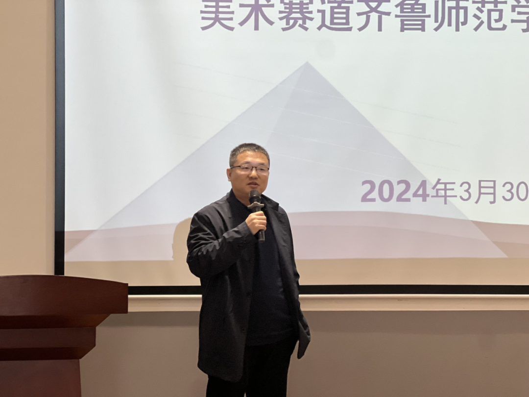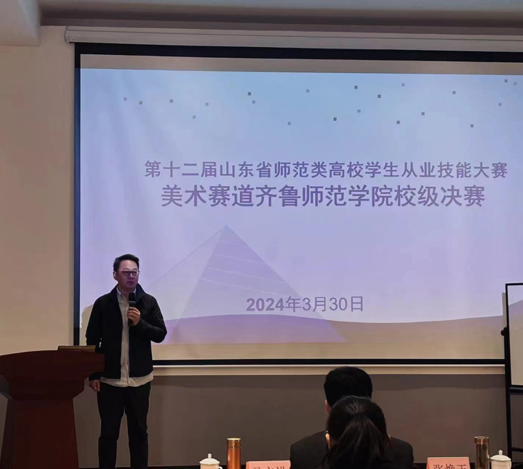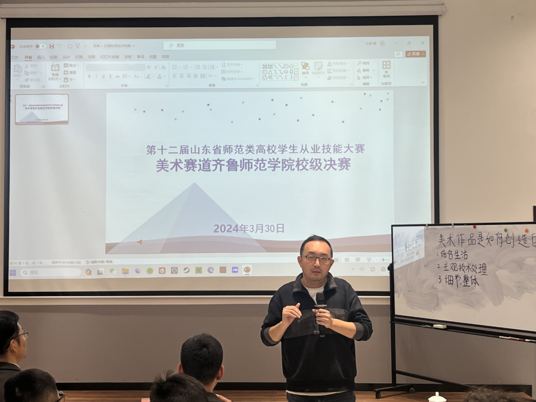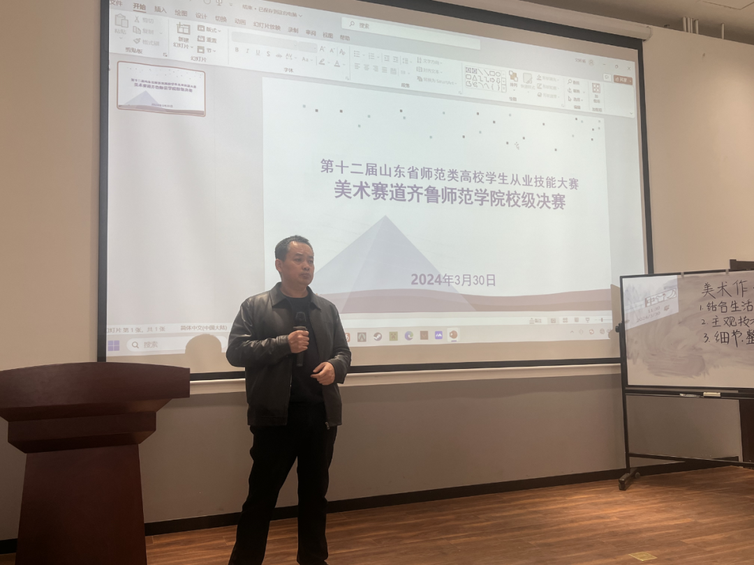 3月30日上午,第十二届山东省师范类高校学生从业技能大赛美术赛道齐鲁师范学院校级决赛在历下校区美术学院阶梯教室举办。济南市教育教学研究院美术教研员张焕玉,全国普通高等学校美术教育专业教师基本功大赛个人全能一等奖获得者、济南大学美术与设计学院马立洪,济南市市中区教体局艺术教研室负责人郭萌,应邀作为专家评委莅临指导。美术学院党委书记辛源、美术学院院长杨三军、美术学院副院长李冉,及部分学生代表观看比赛。