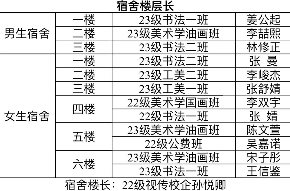 辛源从“为什么设立楼层长”“楼层长该做什么”“如何做合格的楼层长”三个角度作了细致阐述。他以宿舍重要阵地作用、宿舍育人功能和宿舍安全重要性为切入点,概括宿舍楼层长的角色定位,鼓励同学们做“信息员”,成为党建学团队伍的眼睛和耳朵,及时发现问题,做好上传下达,建设安全公寓;做“督察员”,用强有力的工作作风督促宿舍各项管理制度落实,形成人人参与宿舍建设的良好氛围,建设文明公寓;做“调停员”,保持敏锐度,及时消解负面情绪,建设和谐公寓;做“服务员”,掌握宿舍动态,排查安全隐患,推进寝室文明,以切实行动主动服务同学们。同时,辛源结合美术学院学生公寓情况,对做好楼层长工作提出三点建议。一是成为履行宿舍管理规定的“模范生”,正人先正已,严格履行宿舍规定,以身作则,用实际行动和优良习惯影响身边同学。二是当好服务同学们的“勤务兵”,做到手勤、眼勤、脚勤,以严谨的工作态度完成宿舍管理工作,在实际工作之中守住本心,认真履职;三是做好维护宿舍安全的“奉献者”,保持为同学全心全意服务的初心,用劳动成果展现工作作风,为宿舍建设提供保障。
