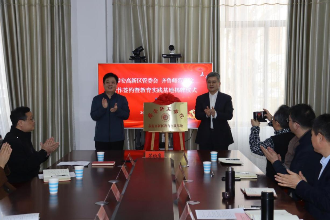 为积极推进校地合作,1月18日,齐鲁师范学院副校长张兆明一行赴泰安高新技术产业开发区对接合作,泰安高新区党工委副书记、教育工委书记姚来新,泰安市教育局总督学杜平等出席会议。会上举行齐鲁师范学院泰安高新区教育实践基地揭牌仪式,并签署基础教育合作协议。会议由泰安高新区教育工委副书记王文强主持。