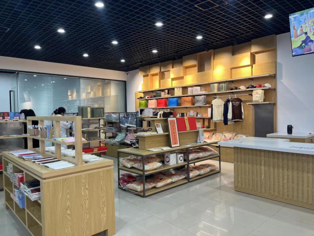 用产品赋能创新创业体系,指向培养目标。“君子文化”校园文创以强化学生职业胜任力和持续发展能力为目标,以提高学生实践和创新能力为重点,深化校企合作,通过原创性的创新设计,分类别、系列化开发,把油画、国画、书法、工艺与产品相结合,开发市场上适应文化形象元素的文创产品,全方位多形式多载体呈现君子文化。从4月中旬启动,经过作品设计、实体店装修、文创加工、布展展陈等环节,历时8个月,“君子文化”文创店现已经入驻章丘校区创新创业学院基地,正式面向师生展示。店里放着君子文化讲座视频,摆着君子文化书籍,陈列着君子文化文创产品,文化氛围浓郁。同时,君子文创系列套装获得山东省第七届大学生艺术展演设计乙组一等奖。文创设计团队致力于让文创作为学校展示和交流的一个窗口,让君子文化可体验、可触摸、可携带,让同学们学君子、识君子、做君子,助力学校君子文化塑造,培养具备创新创业素养的应用型、复合型、创新型人才。