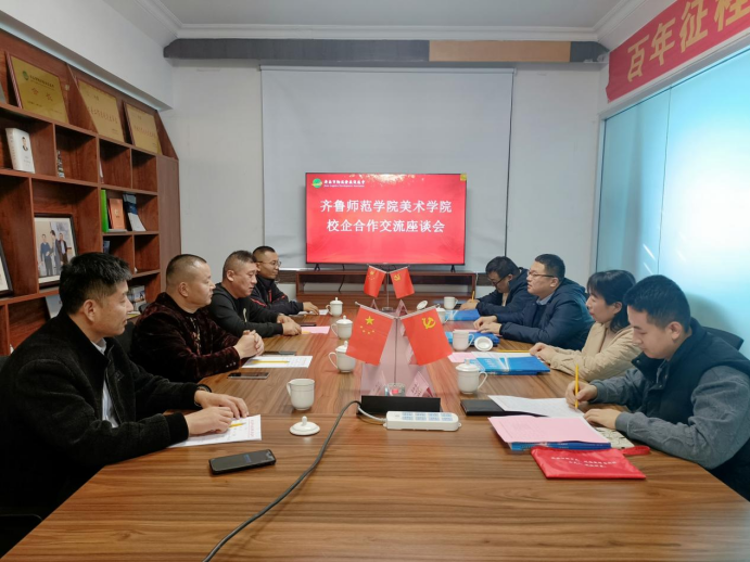 在济南市物流发展促进会,双方举行了校企合作交流座谈会。济南市物流发展促进会秘书长、山东星光大道供应链管理有限公司董事长杜兆伟,济南市物流发展促进会工会主席、山东广汇供应链管理有限公司董事长张先海,济南市物流发展促进会理事、济南文文物流有限公司董事长王勇,济南市物流发展促进会理事、济南利盟物流有限公司董事长徐萌参加座谈。杜兆伟介绍了济南市物流发展促进会基本情况,辛源介绍了齐鲁师范学院基本情况和美术学院事业发展、学风建设、人才培养情况,李冉介绍了美术学院的师资队伍、教学科研建设等情况,双方与会人员围绕企业发展人才需求情况、业态发展对人才培养的新要求等进行交流和探讨,对提升学院人才培养与社会用人需求的契合度提出意见和建议。