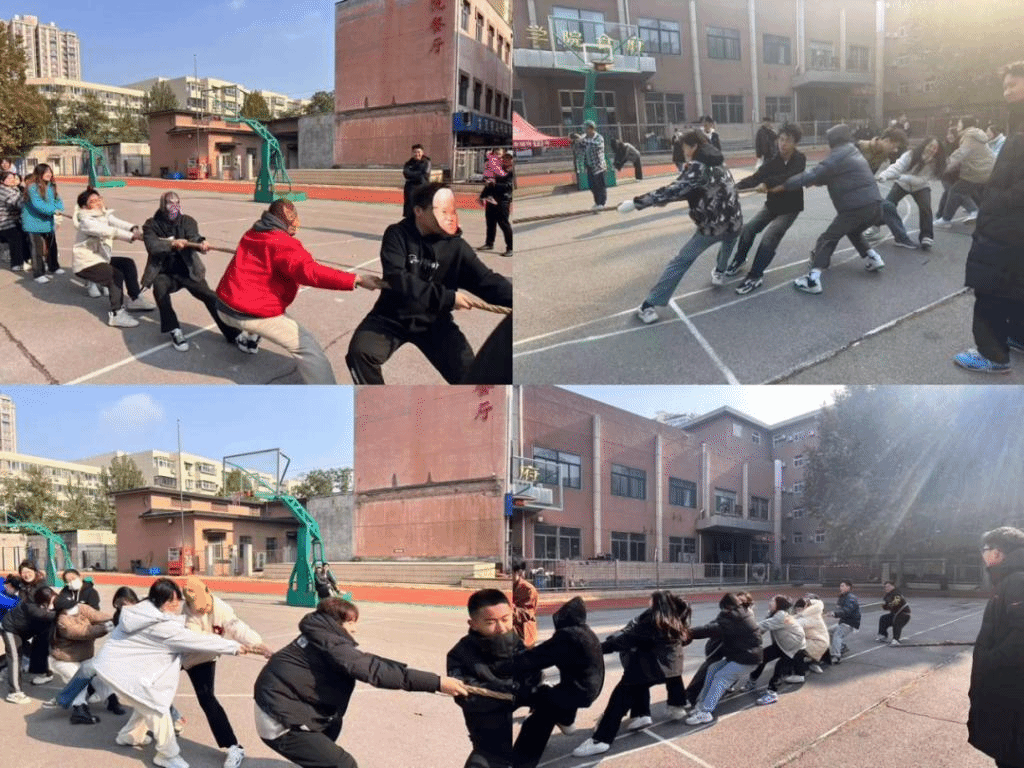 力拔山河气盖世,一条绳子一条心。同学们各显神通,重心下移,交错站位,甚至用别出心裁的面具来逗笑对手。每个人手中紧握的绳子都汇聚成了团队的力量,与队友们挥汗如雨,与对手勇争先锋,到底谁才是最强团队?