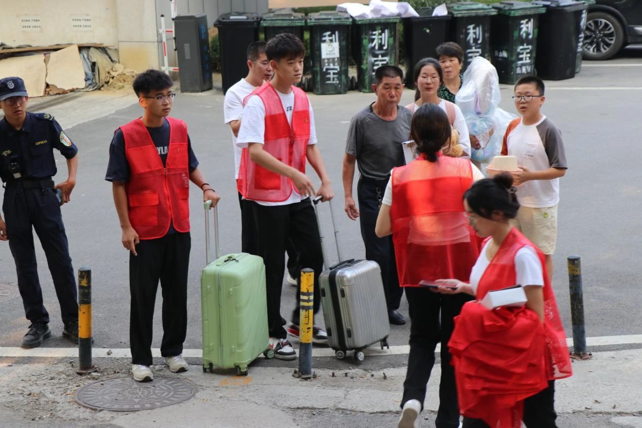 沿操场北门前进,身穿“红马甲”的志愿者们,从新生手中拎过一件件行李,一趟趟来回穿梭在人群中,一声声“同学你好”,一句句“你好,我来帮你吧”让新生初入校园时便感受到志愿者的热情。志愿者在校园内往返奔波,分工明确,或帮忙带路,或咨询答疑,热情暖心的服务成为美术学院一张对外的生动名片。