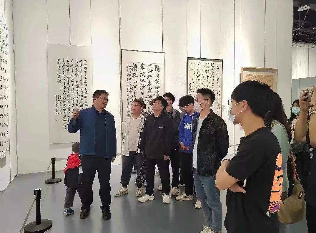 本次活动特别邀请山东画院山东书法院副院长、新闻宣传中心副主任翟圣亮为大家做现场讲解导览。翟副院长的讲解通俗易懂,氛围轻松愉快,为同学们今后的创作提供了许多建议。