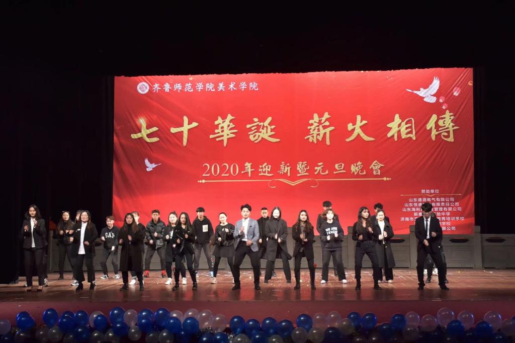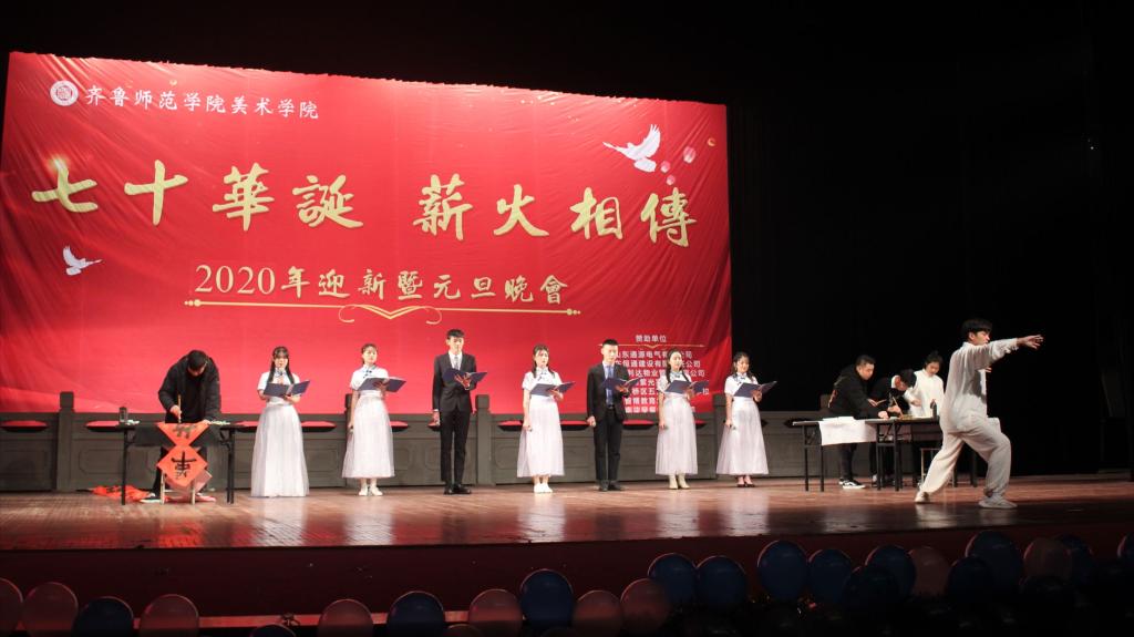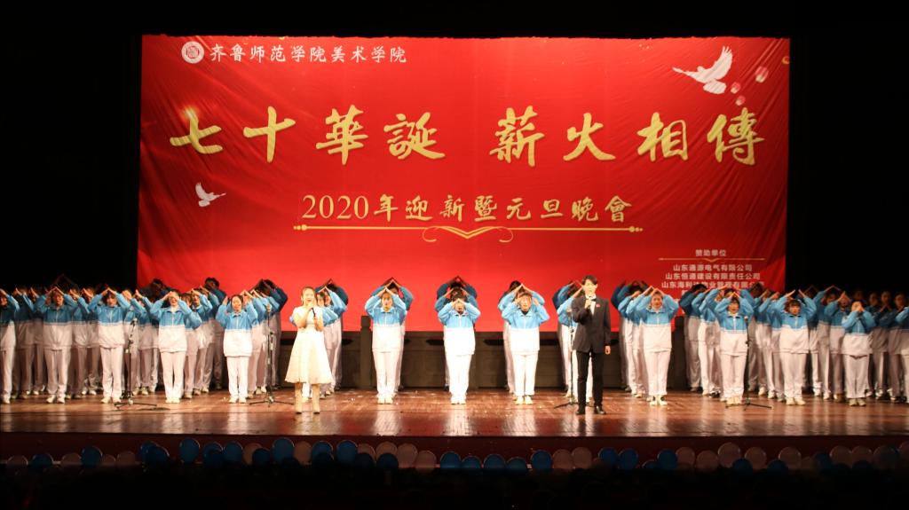 2019年12月19日,“七十华诞 薪火相传”2020年迎新暨元旦晚会在梨园大剧院正式拉开帷幕。齐鲁师范学院副校长王海致开场辞,回首过去累累硕果,展望未来成就可期。师生欢聚一堂,共享美好视觉盛宴。
