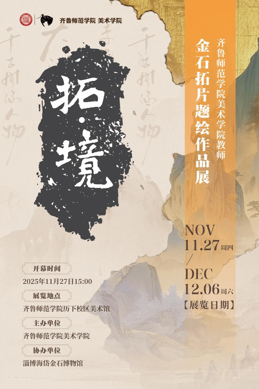 11月27日下午3时,《拓·境》——齐鲁师范学院美术学院教师金石拓片题绘作品展将在历下校区美术馆开展。