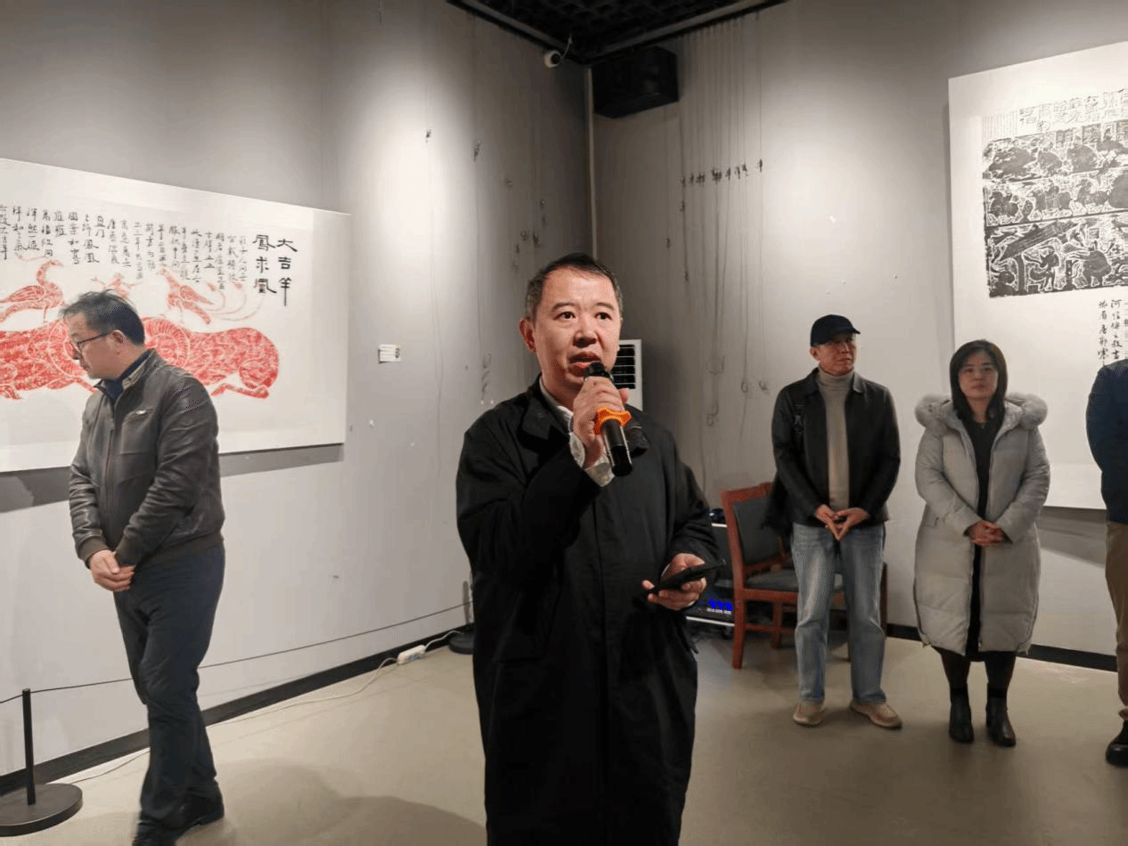 11月27日下午,《拓·境》——齐鲁师范学院美术学院教师金石拓片题绘作品展开幕式在历下校区美术馆圆满举行。历下校区党总支书记张延昌,离退休工作处处长安健,离退休干部党委书记郁志营,美术学院党委书记辛源,美术学院院长杨三军,美术学院党委副书记刘芳,美术学院副院长李冉、副院长王华军,淄博海岱金石博物馆馆长杨旭以及美术学院各专业教研室主任、副主任,教师团队和学生代表出席开幕式。开幕式由杨三军主持,对于本次展览的策划准备和特色亮点、美术学院的实践教学实施和美育协同育人推进,作了专业的梳理和介绍。