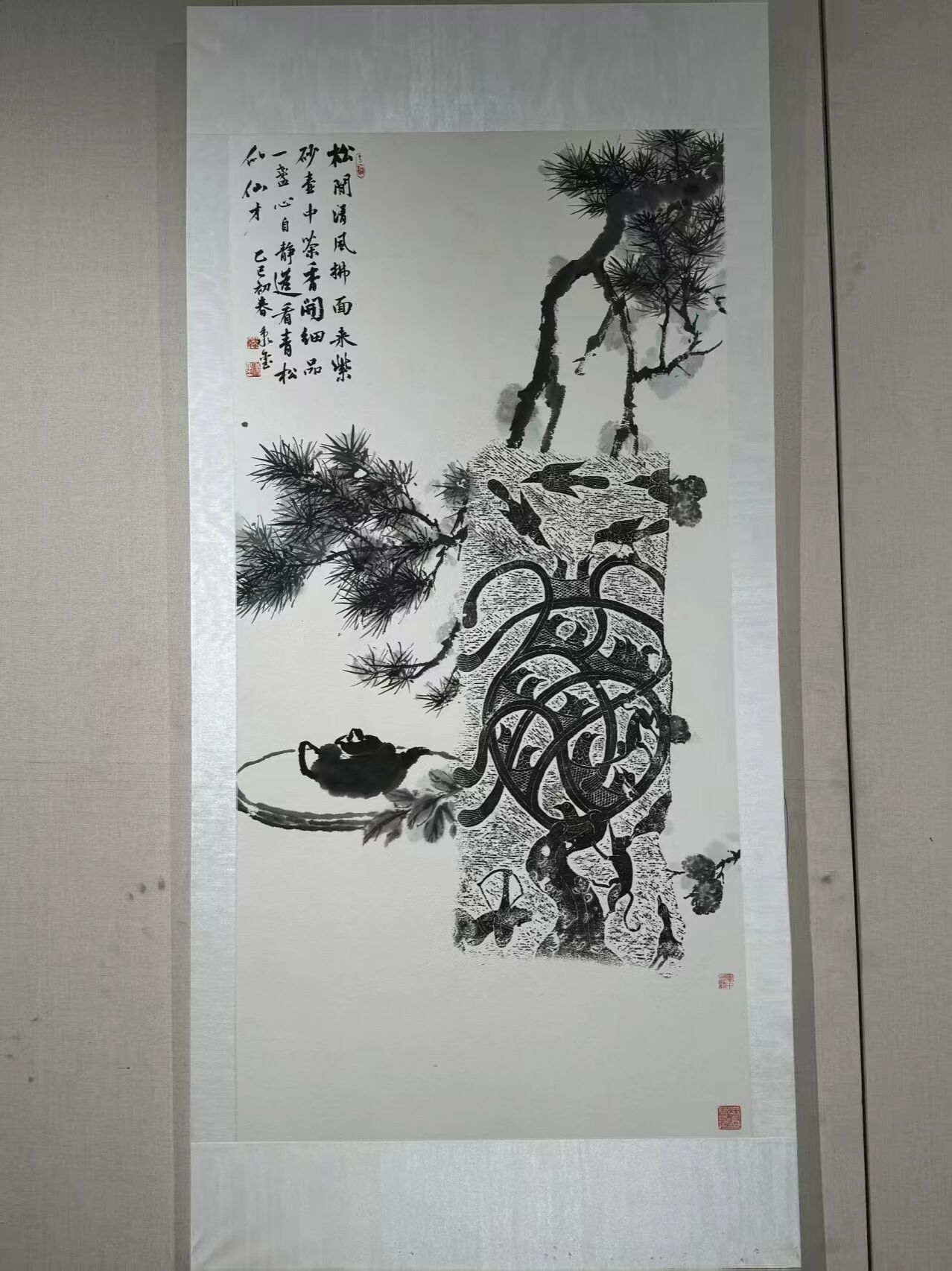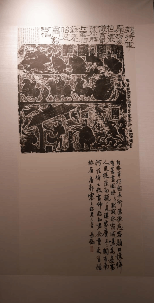 本次展览以汉代画像石、摩崖石刻等汉魏拓片为基底,齐鲁师范学院美术学院教师展开二度创作。美术教师以水墨技艺融入当代笔触,书法教师题跋考据、阐发新思,让金石遗韵与丹青笔墨相映成辉。创作中,教师们有机融合“师古与创新”“技法与理论”,既彰显古代石刻气魄与当代艺术探索精神,更积累宝贵经验反哺教学,生动诠释“以创促教、以研助学”的教育理念。