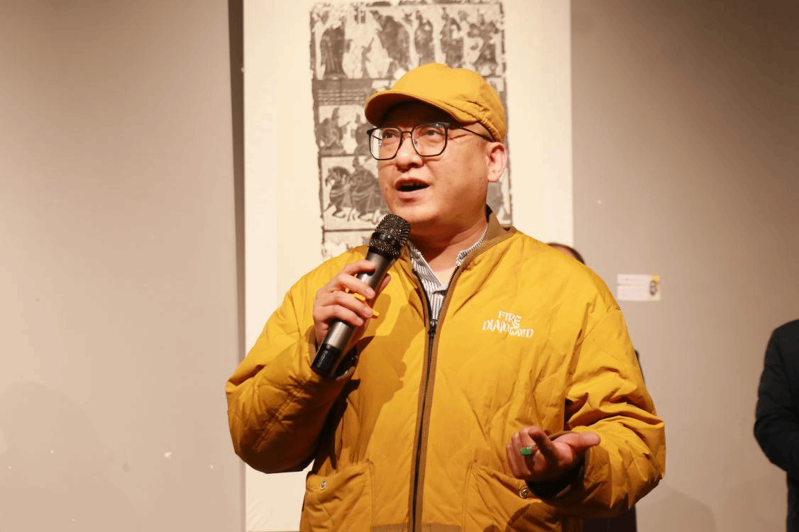 淄博海岱金石馆馆长杨旭发言中,首先感谢老师们的题跋题绘让拓片熠熠生辉。他引用吴昌硕“艺术创作源于金石碑刻”、王铎“学书不参透古碑,书法终不古,为俗笔多也”的观点,以及赵汝珍《古玩指南》中“世人当以碑刻为基本素养”的论述,强调金石碑刻的重要性。并引用钱穆先生所言“山东金石碑刻的辉煌呈现,自汉唐以来从未有之”,阐述金石拓片的深厚历史文化底蕴和本次展览的特殊和重要之处。