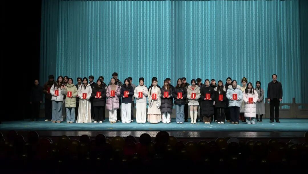 12月26日,美术学院第二届“雅韵新章 艺启未来”十佳歌手大赛暨“学榜样 争先锋”表彰颁奖典礼在梨园大剧院举行。 齐鲁师范学院副校长张兆明,齐鲁师范学院党委委员、统战部部长宋新刚,济南市政协常委、济南市文联副主席、济南中山书画院院长、美术学院优秀校友王克,历下校区管理办公室主任张汝山,国资处处长朱礼恒,审计处处长徐志庆,党办校办副主任马克,学生工作处副处长王德波,基建处副处长葛飞,网络信息中心副主任王飞超,党委宣传部正科级干事陈伯平,美术学院党委书记辛源,美术学院院长杨三军,美术学院党委副书记刘芳,美术学院副院长李冉,美术学院副院长王华军,美术学院办公室主任周良银,美术学院团总支书记邹少爽,美术学院正科级教学秘书马秀琴,辅导员老师李玉涛、孟令强、刘婷、杨茜,美术学院教学秘书孙艺出席晚会。2025级全体新生及2024级学生代表参加活动。
