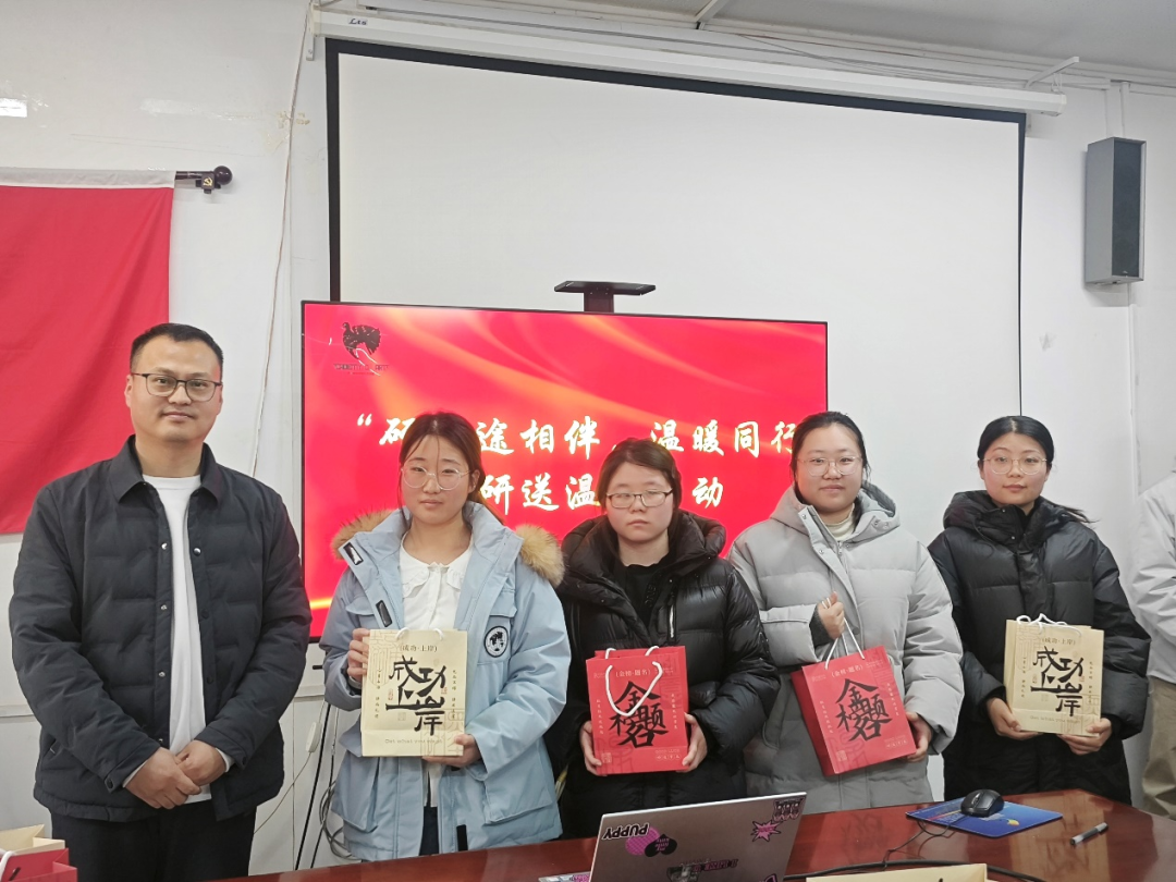 为进一步强化学风建设,营造良好的考研氛围,落实“我为学生办实事”的要求,12月13日,美术学院于209会议室开展“研途相伴,温暖同行”考研送温暖活动。美术学院党委书记辛源,副院长王华军,团总支书记邹少爽,辅导员李玉涛及12名考研学生代表参加活动。