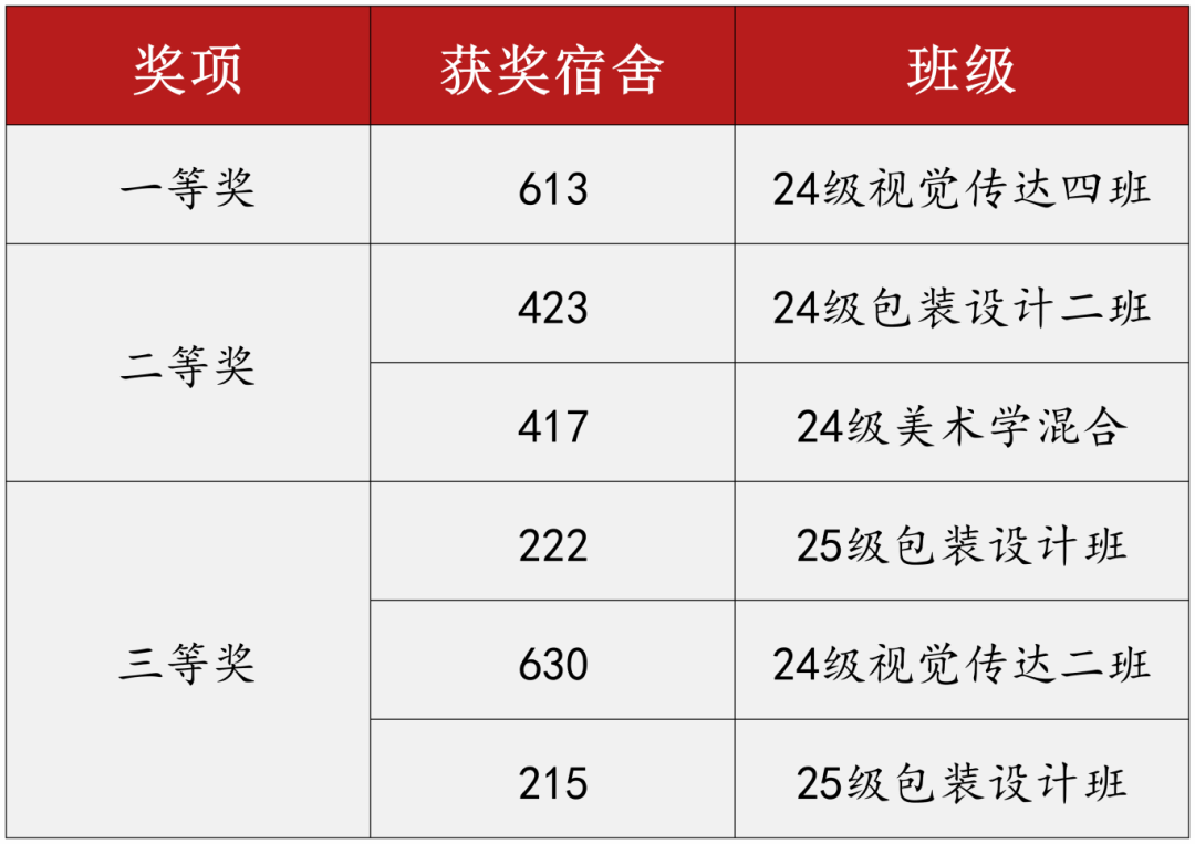 经从创意设计、环境氛围、安全规范等维度综合评定,现将本次活动获奖宿舍图片及对应信息展示如下:
