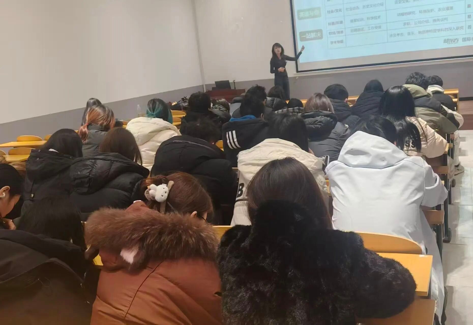 12月11日下午,美术学院举办“雅学精进,思途致远”讲座。讲座由新东方教师乔晨阳主持,新东方教师孙乐恬主讲。2023、2024级学生代表参会。