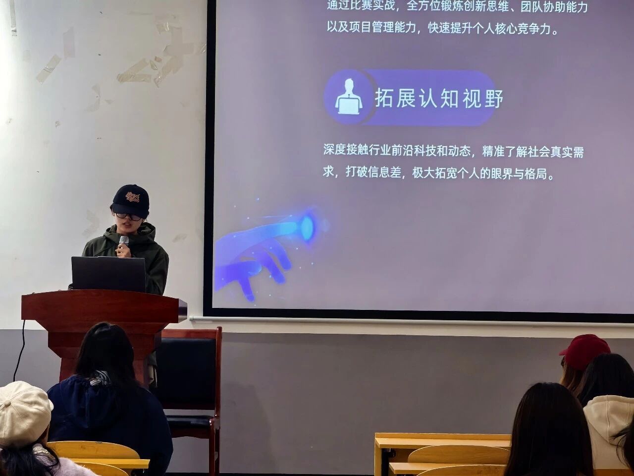 活动最后,常馨润代表本次宣讲团队向全体同学致以诚挚祝福,鼓励大家以双创赛事为契机,在实践中锤炼创新能力、提升综合素养。双创赛事不仅是专业竞技的平台,更是青年学子成长成才的阶梯,希望同学们以此次宣讲为起点,积极投身创新创造实践,在双创赛场中绽放青春光彩、书写青春华章。