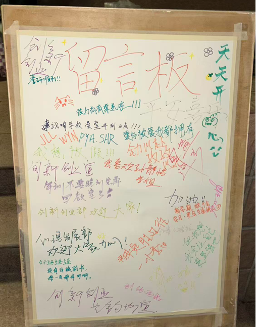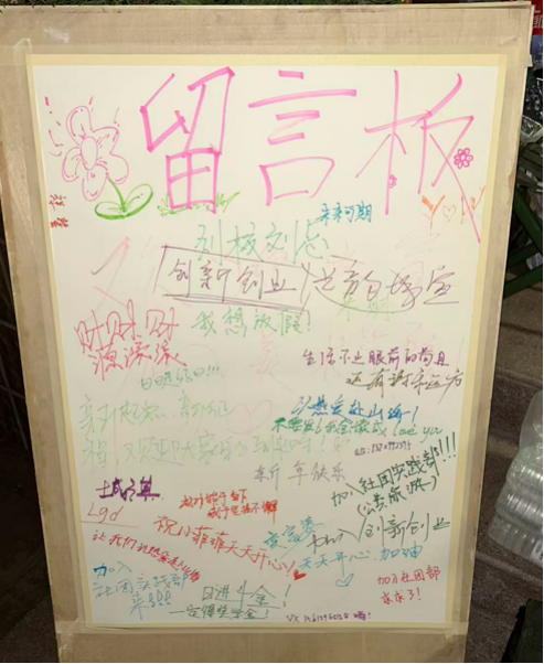 线下留言板被赋予温度,新生们用手写方式倾诉初入校园的忐忑、激动与好奇。有人写下“希望在校园找到志同道合的朋友,一起奔赴热爱”,也有人立下“在新校园,既要努力学习,也要尽情热爱生活”的Flag。