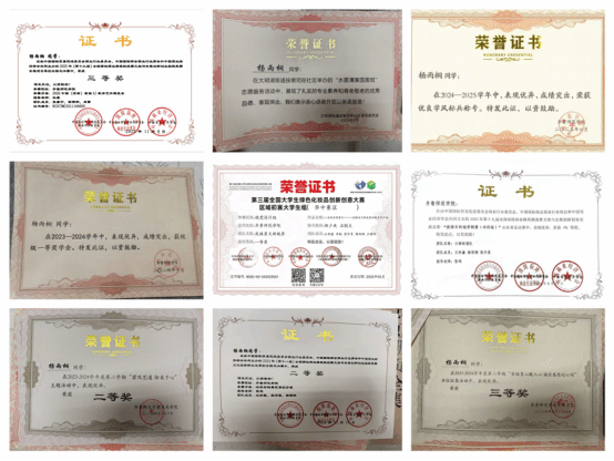 在专业学习方面,杨雨桐勤奋刻苦,锐意进取。学习态度端正,目标明确,学业成绩与综合测评成绩均位于班级第一名,凭借优异的学业表现,曾荣获“校级一等奖学金”“优良学风标兵”等多项荣誉。她不仅具备扎实的专业理论基础,更展现出强烈的求知欲和卓越的学习能力。