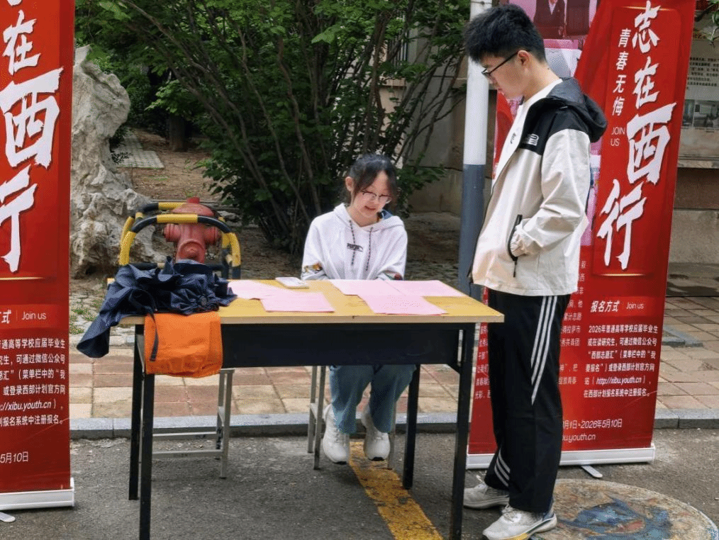 咨询现场氛围热烈,同学们或驻足翻阅明白书,或就报名条件、岗位选择、基层生活等问题向志愿者提问。志愿者们耐心解答每一个疑问,结合往届学长学姐的真实经历,为同学们描绘了在西部基层奉献青春、成长蜕变的生动图景,也让“到西部去、到基层去”的号召变得更加具体可感。