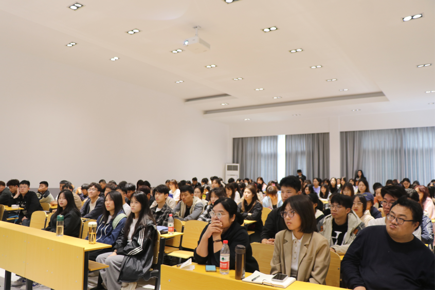 宋继和教授的报告以党的指导思想的三次飞跃为主题主线,引入丰富史料,分析讲授了马克思主义中国化时代化的历史进程和理论成果。宋继和教授表示,马克思主义中国化时代化立足中国国情和时代特点,坚持把马克思主义基本原理同中国具体实际相结合、同中华优秀传统文化相结合,用马克思主义基本原理观察时代、把握时代、引领时代,不断推动理论创新和实践创新。正是这一次次的新的飞跃,实现了党的指导思想与时俱进,有力推进了中华民族伟大复兴的历史进程。宣讲报告内涵丰富、体系完整、讲解细致,通俗易懂,既有理论阐述,又有鲜活案例,为同学们奉献了一场有高度、广度、深度的高质量报告,能够帮助同学们进一步深化对党的创新理论的认识。