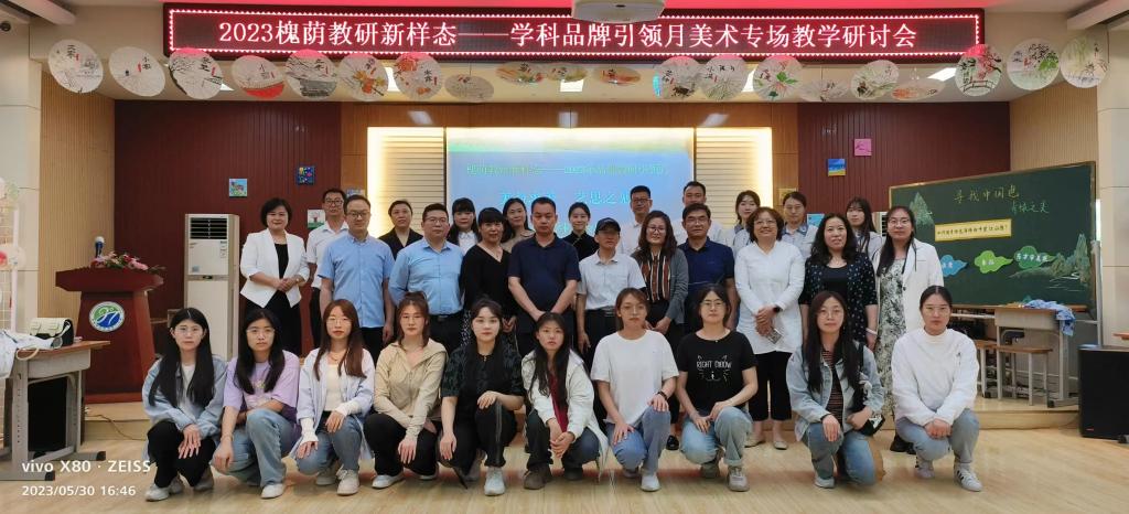5月30日下午,槐荫教研新样态——2023“品牌教研引领月系列活动”美术专场教学研讨会在济南市槐荫区美里湖第一小学举行。齐鲁师范学院美术学院师范类专业师生受邀参加此次教研活动。美术学院领导高度重视此次教研活动,组织学科教学论专任教师刘玉凤带领师范专业十余名学生参加了此次活动。