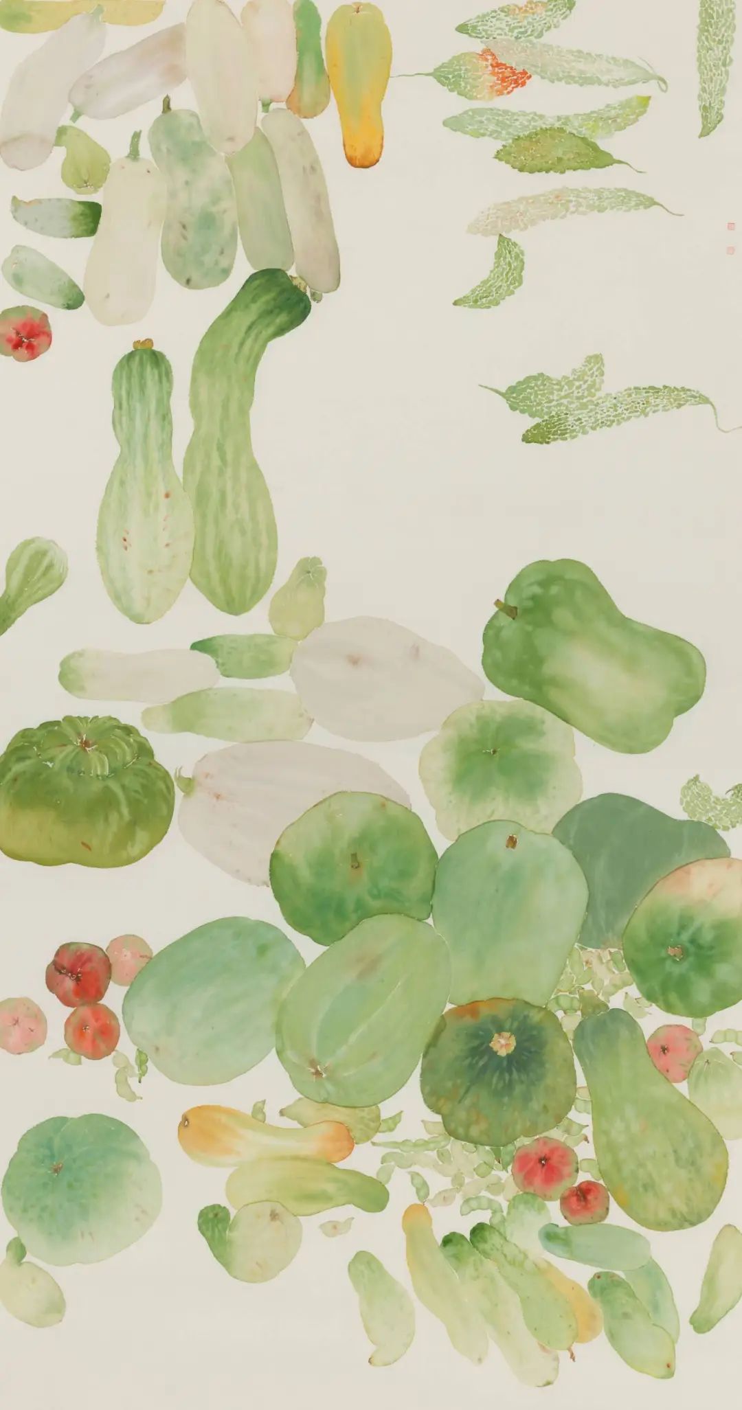 《瓜果飘香》180cm*96cm 2024年绢本设色
