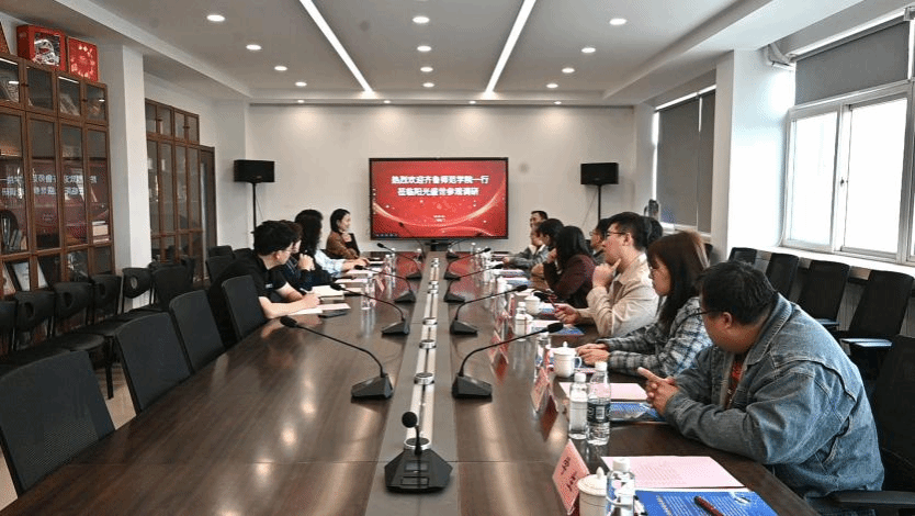 为深入落实精准对接行业需求,深化校企协同育人,助力毕业生高质量就业,4月10日,美术学院党委副书记刘芳,副院长李冉,办公室主任周良银,团总支书记邹少爽,工艺美术教研室主任陈曦,包装设计教研室主任杨波,包装设计教研室副主任路子琰,辅导员李玉涛、杨茜赴山东阳光盛世文化传播有限公司开展访企拓岗专项活动。