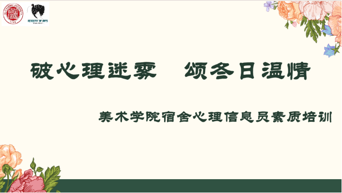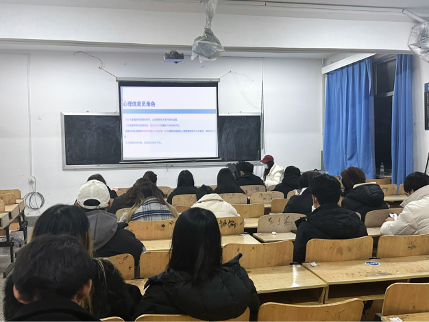 为提升宿舍心理健康信息员的朋辈服务技能,促进学院心理健康工作开展,营造良好的宿舍氛围,齐鲁师范学院美术学院于12月13日19:00在327教室开展了“破心理迷雾,颂冬日温情”——2023级宿舍心理信息员素质培训会议。会议由美术学院辅导员刘婷及心理发展部王乐涵、康芙瑞主讲。