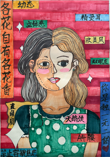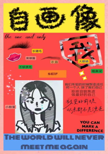为持续推进心理育人工作,进一步提高我院学生对心理健康重要性的认识,帮助学生舒缓心理压力,更好悦纳自己,美术学院于2023年10月18日至10月28日开展了“世人万千,再难遇我”创意海报评选活动。此次活动,同学们积极参与,所有参赛作品以自画像的形式积极表达自我,展示着当代大学生乐观、大胆、特色鲜明的性格特点。下面,让我们一起来欣赏优秀作品吧!
