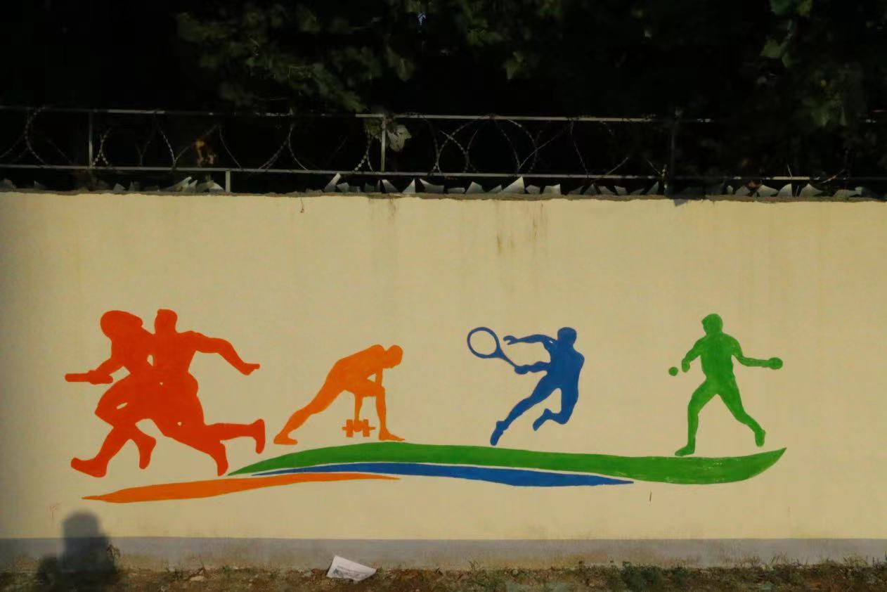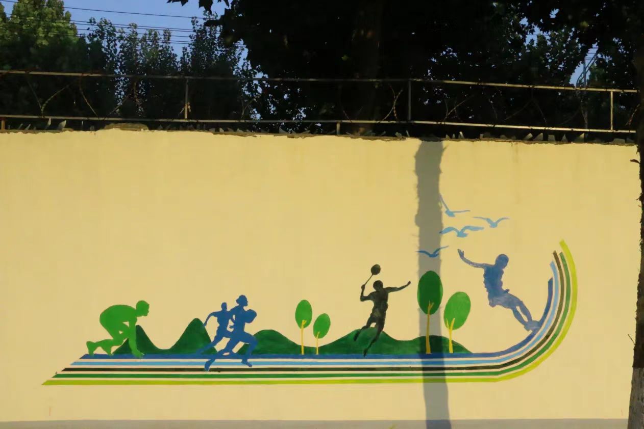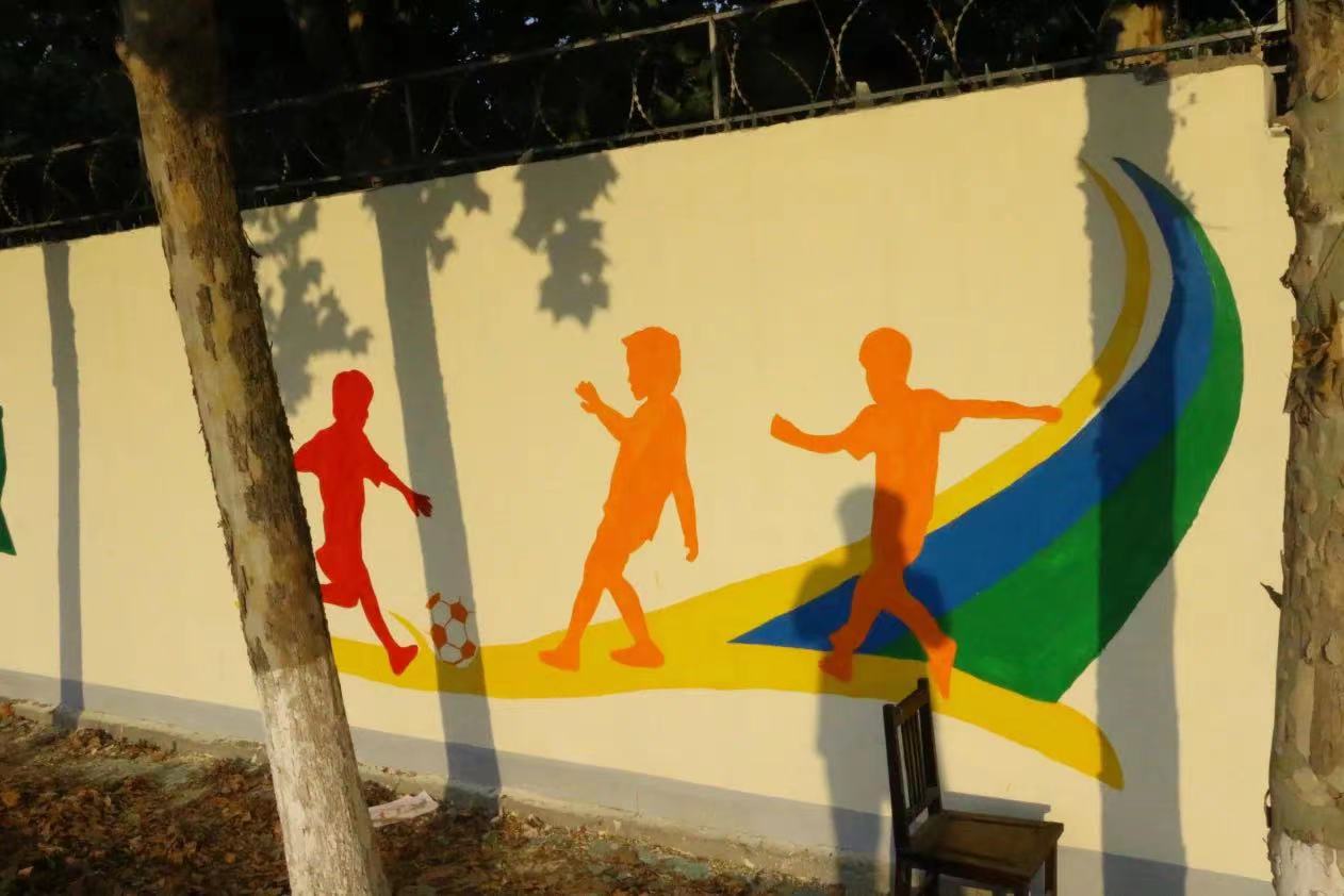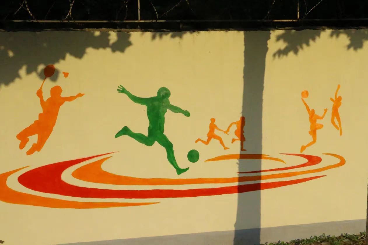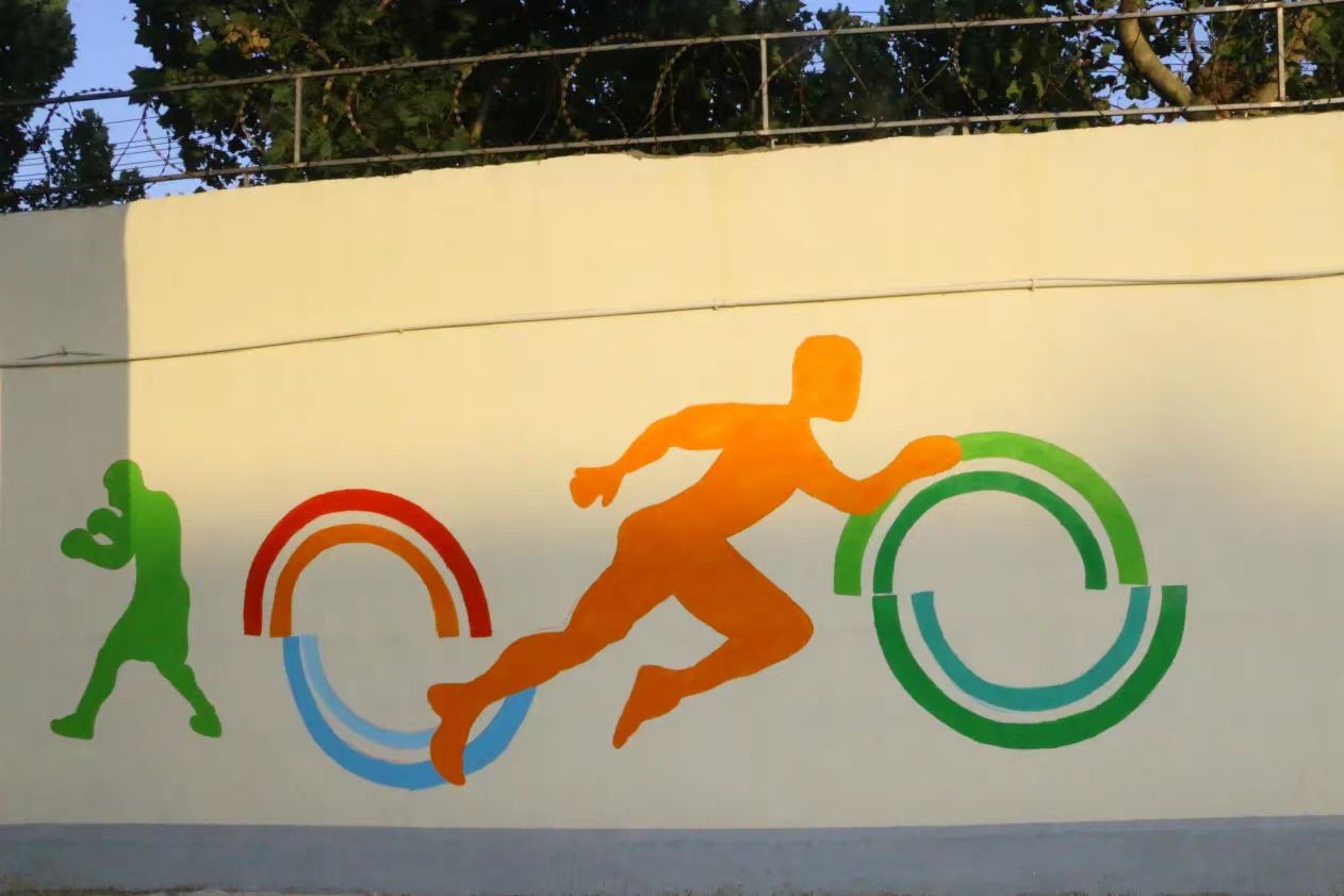 在墙绘的这几天里,虽然每天早出晚归,在太阳下画墙绘,但墙绘也教会了我们很多东西,同学们分工合作,高效有序,静心打磨墙绘的每一部分,让我们体会到了协助合作带来的快乐,从来没有和那么多人一起完成一副作品,虽然天气炎热,但是当我们看到成品的那一刻,感觉所有的努力都是值得的。墙绘让平时大家最常见的操场富有活力,充满色彩,注入青春血液,使整个校园面貌焕然一新。