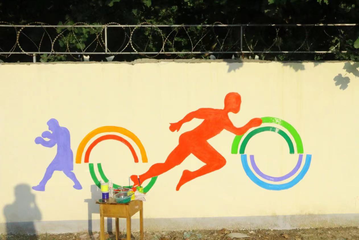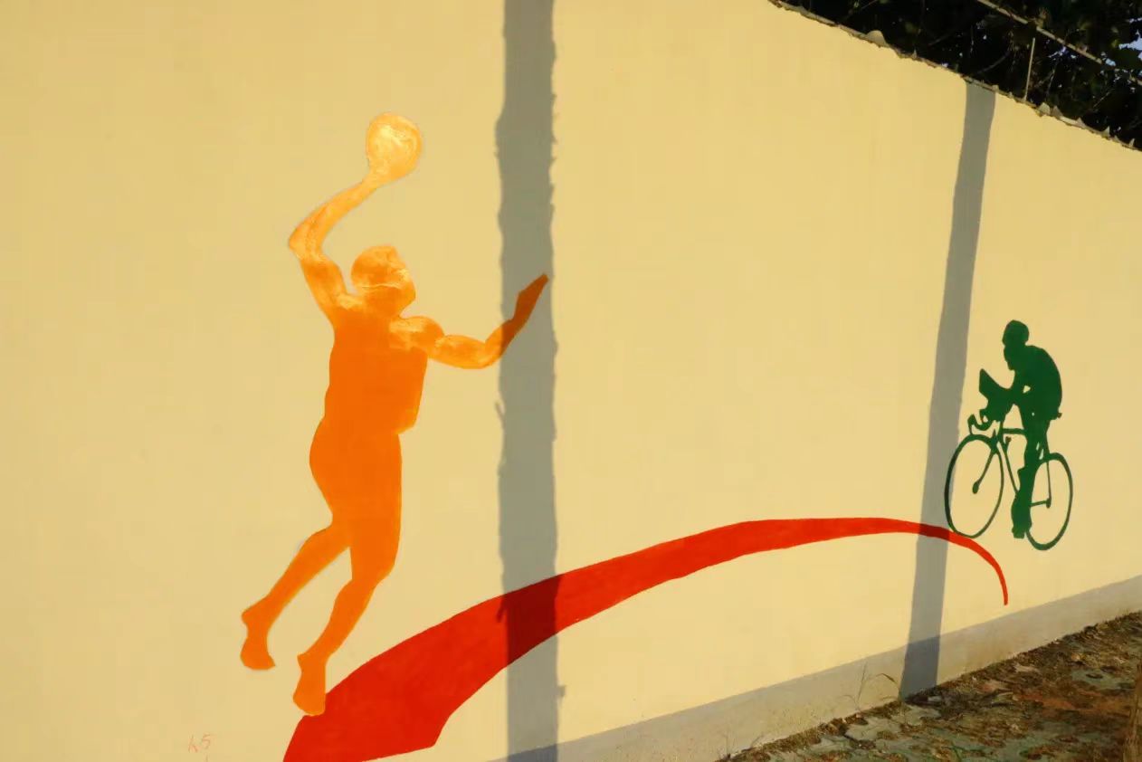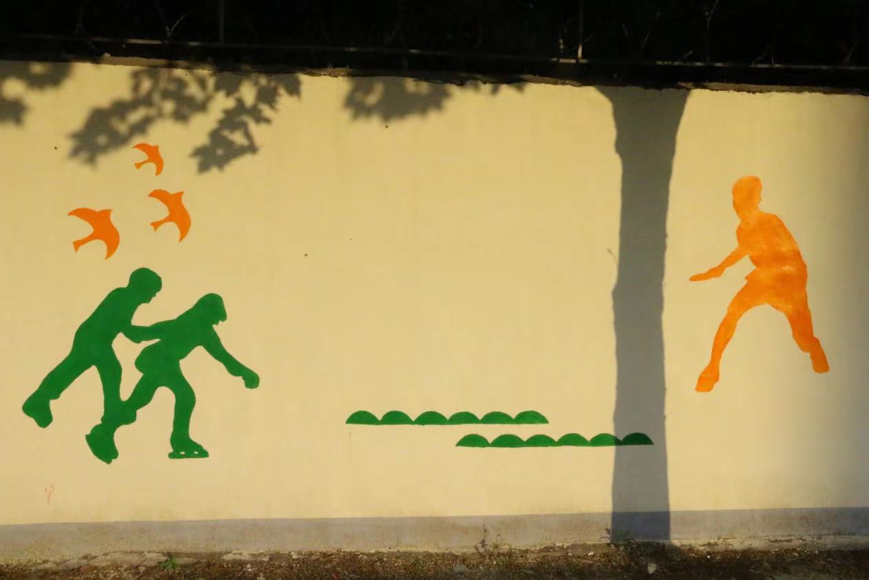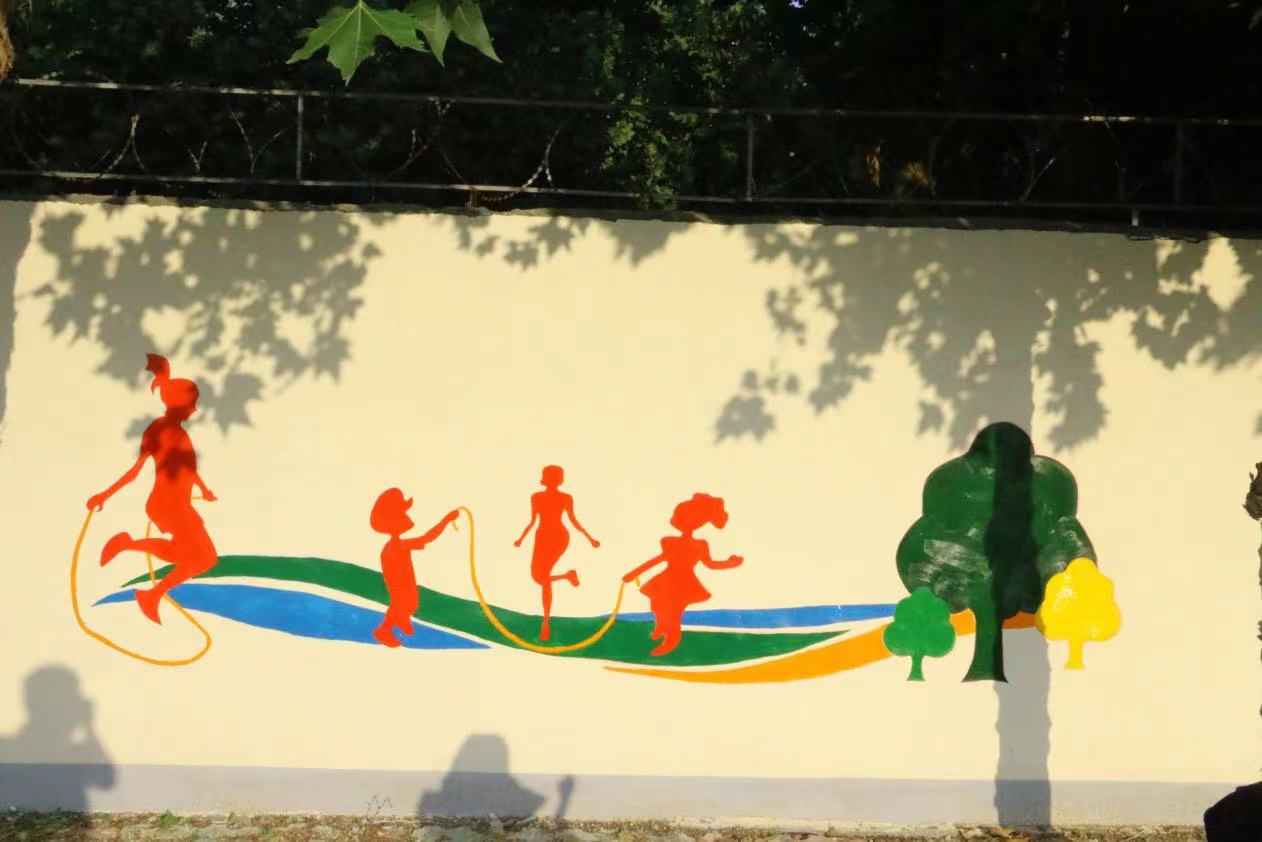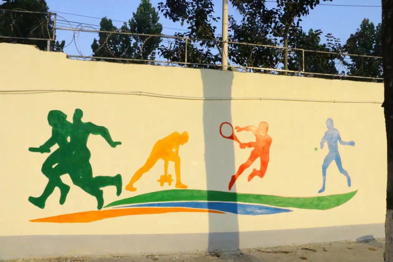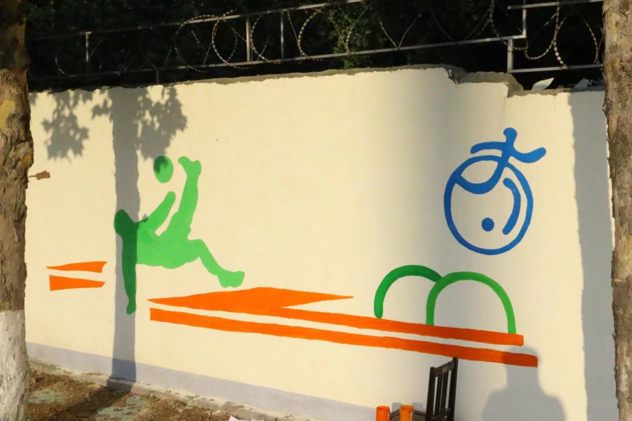 在墙绘的这几天里,虽然每天早出晚归,在太阳下画墙绘,但墙绘也教会了我们很多东西,同学们分工合作,高效有序,静心打磨墙绘的每一部分,让我们体会到了协助合作带来的快乐,从来没有和那么多人一起完成一副作品,虽然天气炎热,但是当我们看到成品的那一刻,感觉所有的努力都是值得的。墙绘让平时大家最常见的操场富有活力,充满色彩,注入青春血液,使整个校园面貌焕然一新。