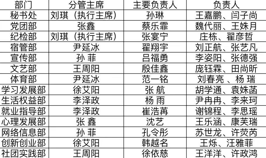 美术学院第三届大学生自律委员会负责人名单公示如下: