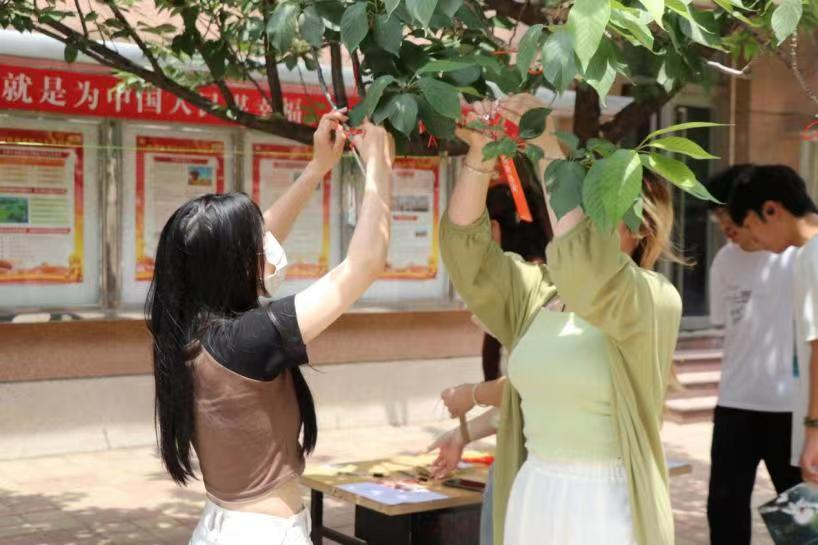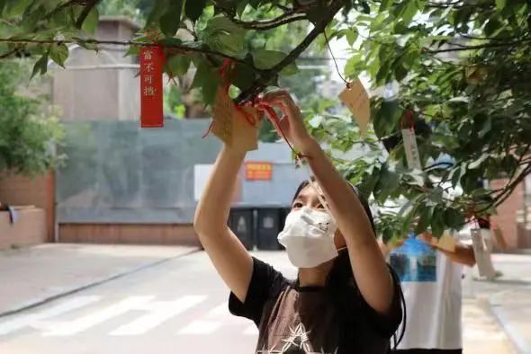在“暖心毕业‘系’,温情满校园”活动期间,同学们利用提供的彩色贺卡、记号笔、红绳等工具写下了对即将毕业的学长学姐们衷心的祝愿,红绳挂松代表希望,传递互相对彼此最诚挚的祝福。毕业生们也在卡片上给予学弟学妹们回复,双向积极鼓励,双向奔赴。
