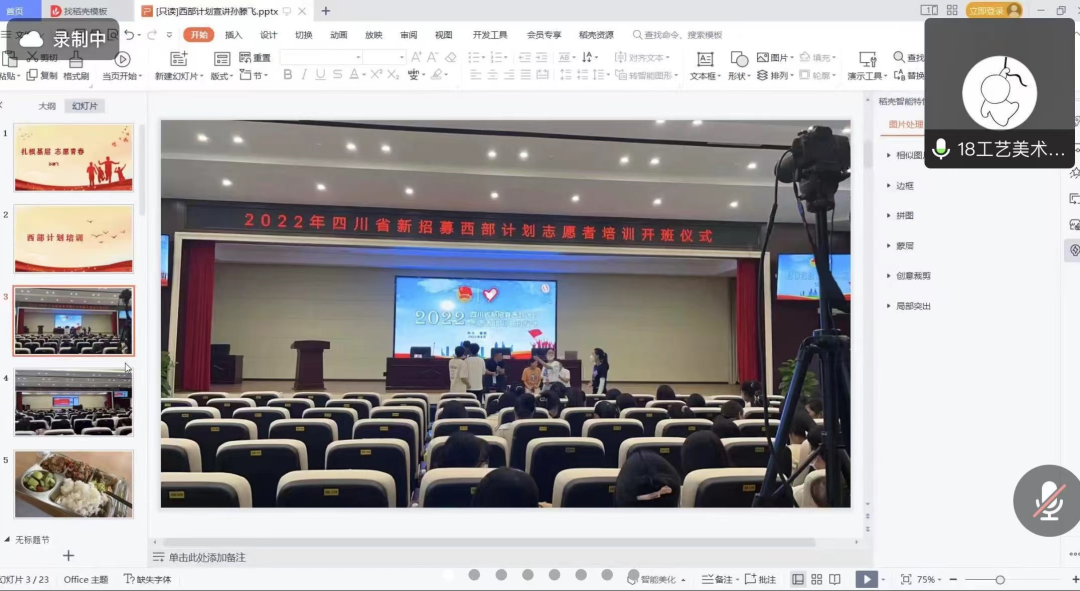 青春报国,扬帆起航。为进一步推进志愿招募工作,引导和鼓励毕业生到西部服务、到基层就业、到乡村工作,美术学院特邀西部计划志愿者、2018级工艺美术专业毕业生孙滕飞作了题为“扎根西部,志愿青春”的报告。孙滕飞,现服务于四川省什邡市。