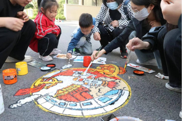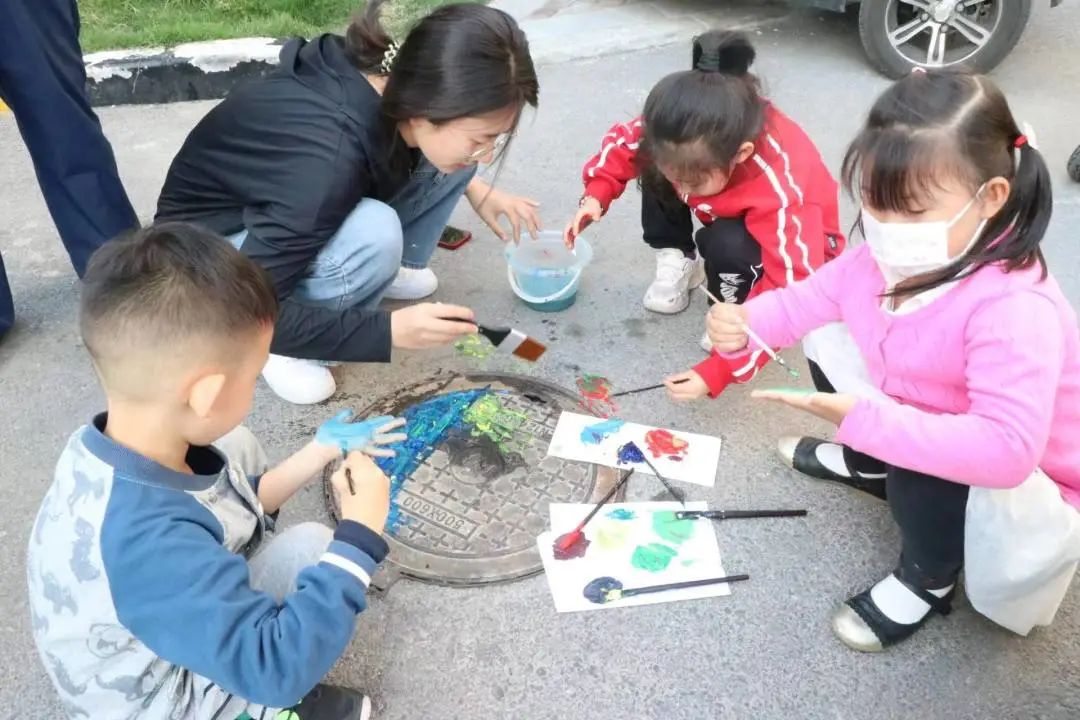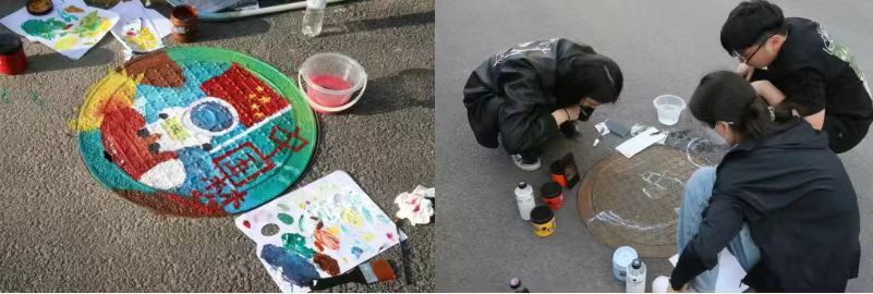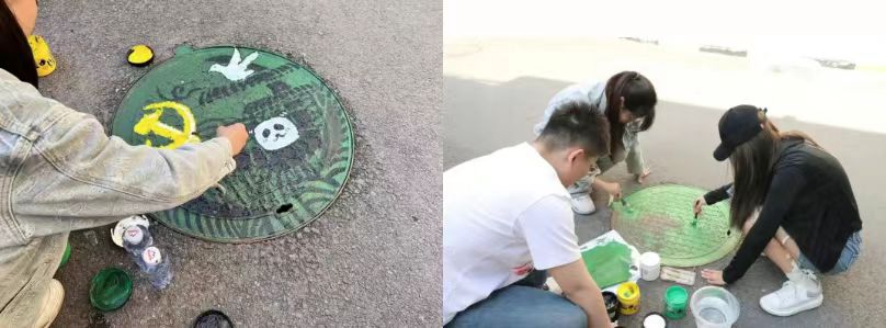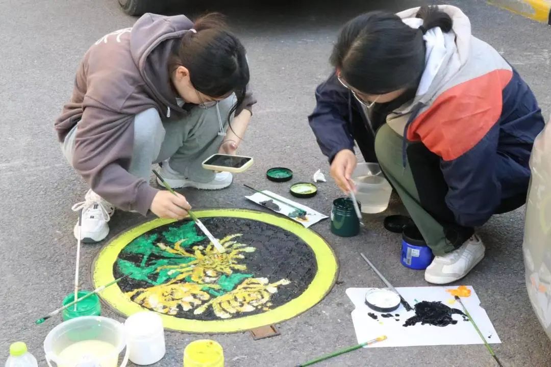 活动现场,志愿者们通过分组合作,有序对井盖进行涂鸦。从勾勒图案到填充颜色,每个环节志愿者们都认真对待。在他们的共同努力下,一个个小井盖有了不一样的色彩,各色颜料也在他们灵巧的双手间生成了五彩斑斓的画面。