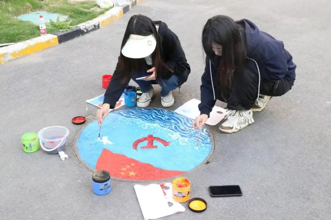 5月8日,齐鲁师范学院美术学院组织党员、发展对象、入党积极分子和志愿者前往绿地山大静园小区开展“君子力行,红心铸魂”井盖彩绘活动。