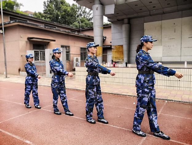 下午因天气原因无法进行室外训练,2020级辅导员牟婷箐与四位教官依次去到36个女生宿舍、11个男生宿舍,帮助整理内务、明确室内陈设秩序,从着装、仪容、纪律、礼节、举止等细微方面一点一滴地要求。同学们服从命令,听从指挥,在军事训练、内务卫生等方面取得了明显进步。
