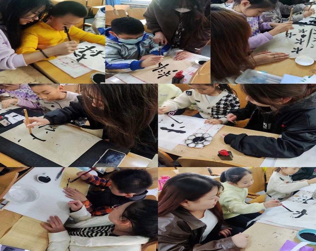 整节课下来,同学们认真听讲,勇于发言,课堂氛围十分积极活跃。学生们在掌握临摹技巧的同时又增强了对书法的兴趣和对中国传统文化知识的了解。宣纸上的线条灵动跳跃也反映出孩子们无限的创造力,同学们的作品充满创造性和趣味性。