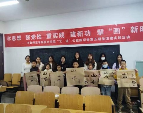 第六期“艺·道”公益国学堂党团建实践活动的开展,受到了家长和学生们的一致好评。主讲老师们在活动中将专业知识转化为传播文化的力量,帮助孩子们学习优秀传统文化和感受书法的文化内涵,同时也使美术学院党团员学生们丰富自我,积累教学授课经验,不断完善自己。