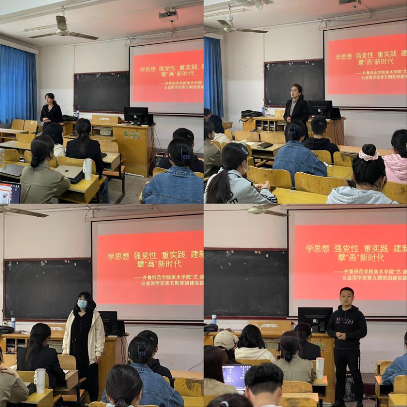 为提高参加“艺·道”公益国学堂授课成员的课堂设计能力和教育教学水平,提升公益课堂的活动质量。2023年4月至5月,美术学院教师党支部对承担授课活动的同学进行多次磨课活动。2023年5月6日,在美术学院218教室,美术学院教师党支部与学生党支部党员教师共同开展了一次磨课活动。