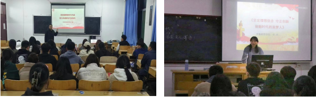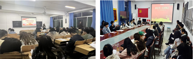 美术学院党委副书记辛源,教师党支部李冉、马静、孟蕾,学生党支部梅茹、牟婷箐、孟令强、刘婷作为此次党课主讲老师分别进行授课,共有45名入党积极分子参加集中学习。