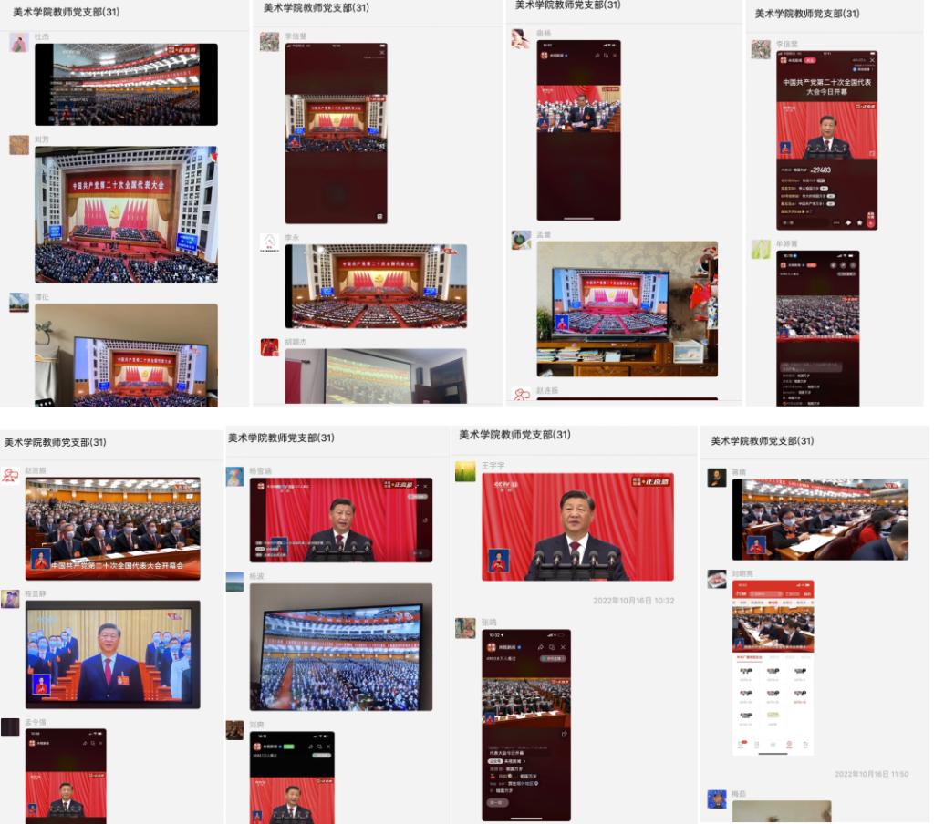 2022年10月16日上午,中国共产党第二十次全国代表大会在人民大会堂隆重开幕,习近平总书记代表第十九届中央委员会向大会作报告。美术学院教师党支部积极组织全体教师党员观看采取线上线下相结合的学习方式观看大会现场直播。