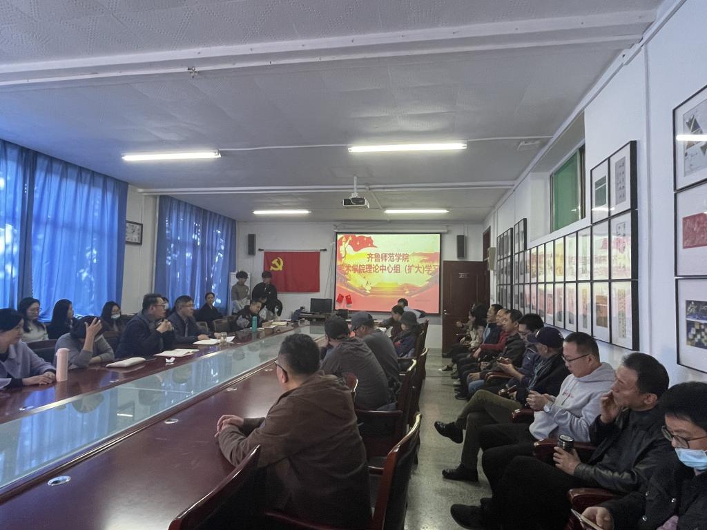 2021年11月18日,齐鲁师范学院美术学院理论学习中心组成员与美术学院教师,以及教师党支部全体党员在教学楼209会议室开展“10月22日习近平总书记重要讲话精神”专题学习。美术学院党总支书记刘增军、美术学院院长杨三军、美术学院党总支副书记胡颖杰、美术学院副院长曹暇、 美术学院团总支书记梅茹、美术学院团总支副书记李永、办公室主任刘芳、教研室主任巩艺、杨恩国,以及刘明亮教授、刘爽教授、辅导员孟令强、牟婷箐及美术学院教工党员参加了会议,会议由美术学院党总支书记刘增军主持。