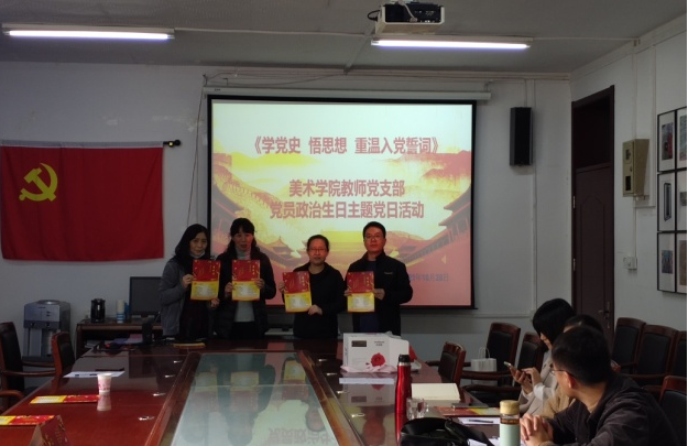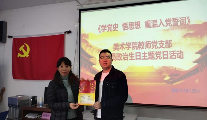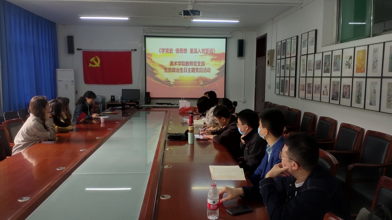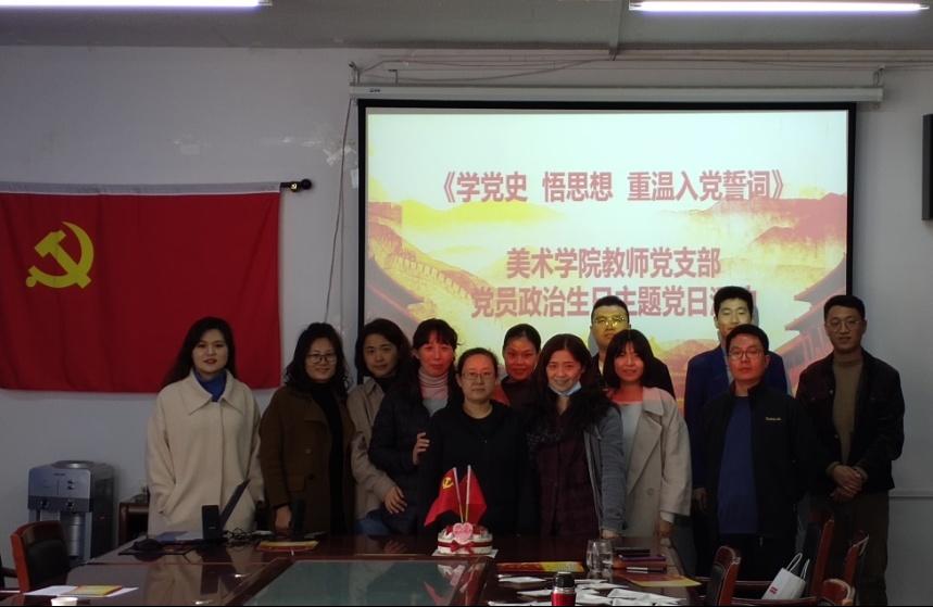 齐鲁师范学院美术学院为深入开展党史学习教育,增强美术学院教工党员党性修养,坚定政治信念,不忘初心、牢记使命。2021年10月23日下午,齐鲁师范学院美术学院教师党支部组织部分党员教师在209会议室开展了《学党史 悟思想 重温入党誓词》党员政治生日主题党日活动。会议由教师党支部书记李冉主持,教师党支部委员谭宏熙、李彦霖,教工党员梅茹、牟婷箐、李永、杜杰、颜亚男、杨雪涵、赵连振、刘玉凤等多名近期过政治生日的党员同志参加了本次主题党日活动。