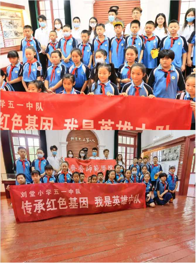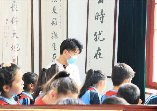 2021年7月18日,齐鲁师范学院美术学院8名“学党史、跟党 走"宣讲团成员为刘堂小学五一中队的小小少先队员们讲述了革命先辈 的红色故事,用青春之声向先辈致敬,用青春之声引领祖国的花朵,用 青春之声描绘一个绚丽的中国。