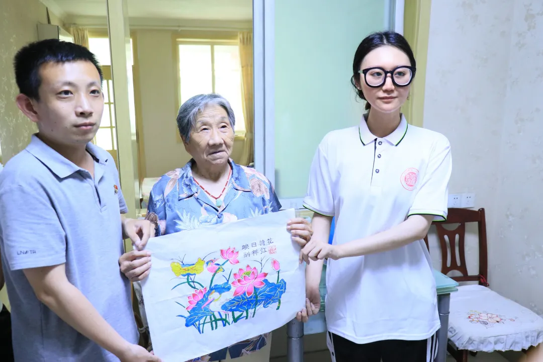 2021年7月17日,齐鲁师范学院美术学院“三下乡”青年学子志愿队成员联合济南市历下区东关街道历园新村社区居民委员会,来到了刘运芝老人家里,给老人带来了关怀与温暖,并与老人亲切的交谈,聆听老人向我们讲述她亲身经历的红色故事。