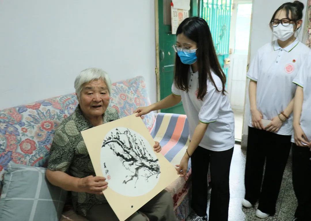 为深入贯彻“学党史、跟党走”的思想和弘扬党的光荣传统与优良作风,2021年7月15日,齐鲁师范学院美术学院“三下乡”成员在东关街道历园新村社区居民委员会夏老师带队走访慰问了有53年党龄的吕岱琴老党员。