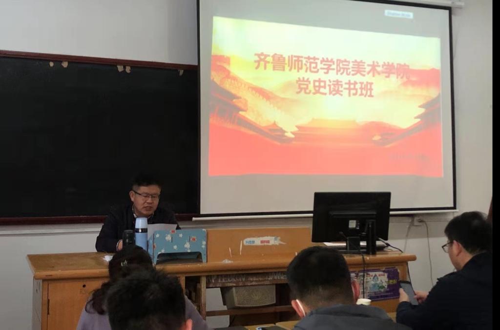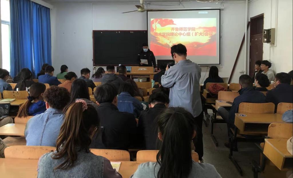 为迎接中国共产党成立100周年,认真开展有关党史学习的系列活动,真正贯彻“用党的伟大成就激励人,用党的优良传统教育人,用党的成功经验启迪人,用党的历史教训警示人”的理念,2021年4月15日14:00, 美术学院组织全体党员在218合堂教室召开理论学习中心组(扩大)学习会议。会议由美术学院党总支副书记胡颖杰主持,美术学院党总支书记刘增军、美术学院院长杨三军、美术学院副院长曹暇、办公室主任刘芳、学生党支部副书记李永、教师支部书记李冉、教师支部副书记马静,以及蒋婧、谭宏熙、王宇宇、李信斐等参加了会议。