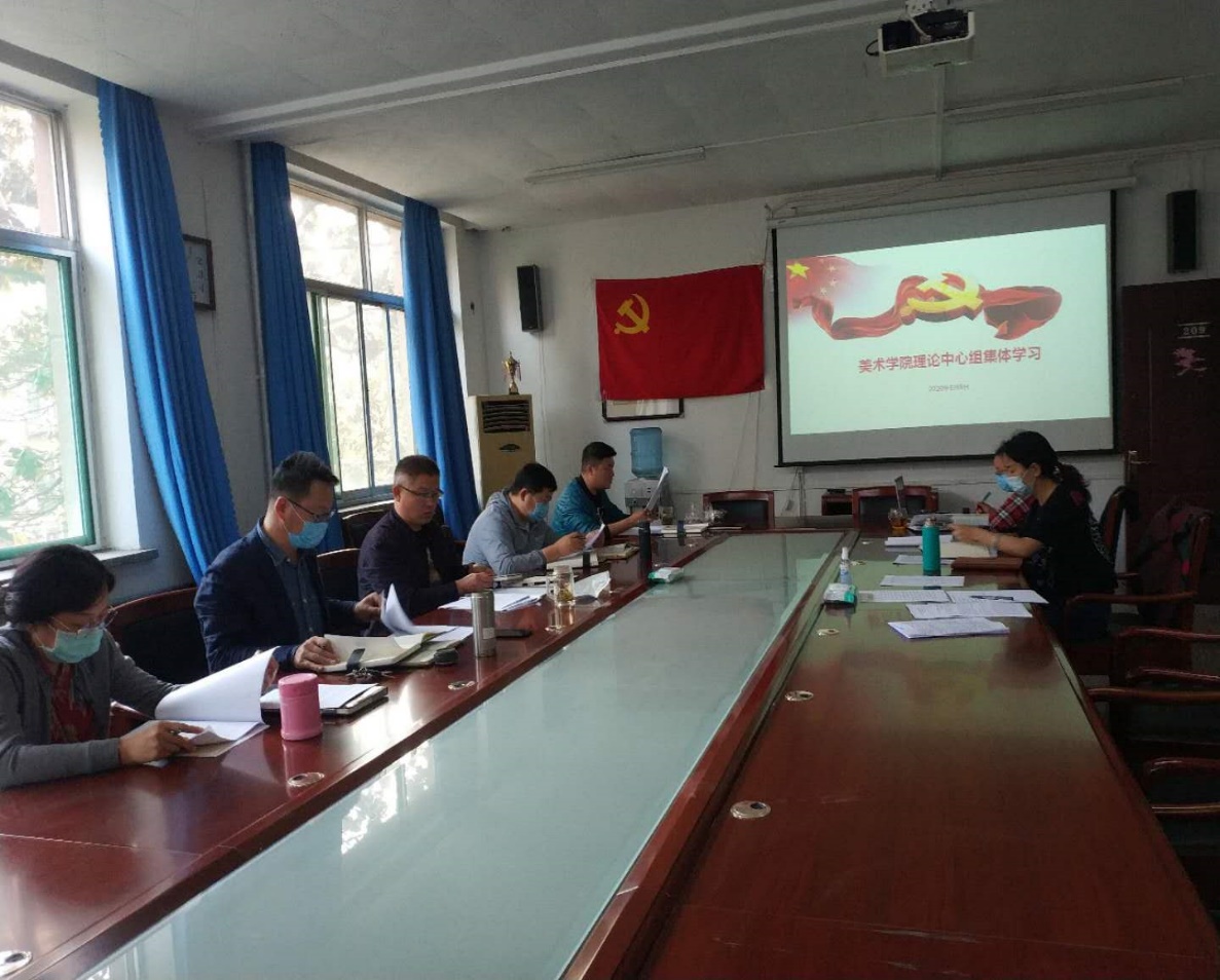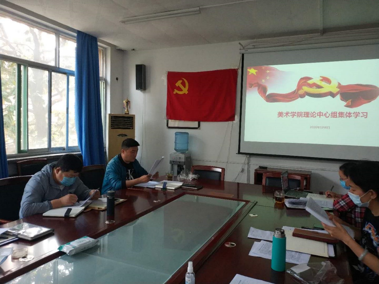 2020年5月6日下午,美术学院中心组成员在教学楼209会议室召开会议并组织本学期第一次集体学习。会议由美术学院党总支书记刘增军同志主持,美术学院杨三军副院长、胡颖杰党总支副书记、曹暇副院长、王跃辉组织员、刘芳、梅茹和李冉等成员参加了会议。会议的主要议程是深入学习习近平新时代中国特色社会主义思想,认真贯彻执行《齐鲁师范学院党委(党总支)理论学习中心组2020年理论学习安排意见》的通知要求,树牢“四个意识”、坚定“四个自信”、做到“两个维护”。