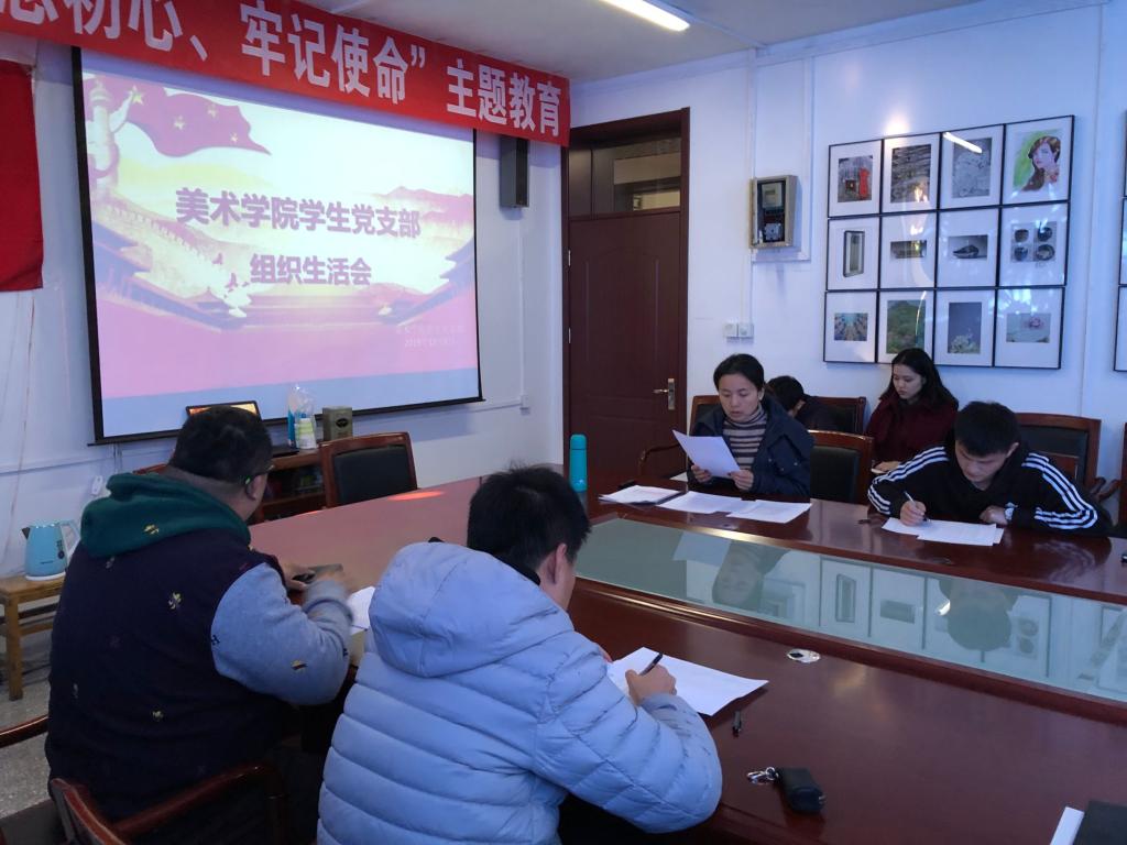 按照美术学院学生党支部“不忘初心、牢记使命”主题教育要求,2019年12月5日中午13:00,美术学院学生党支部在209会议室召开了专题组织生活会。会议由学生党支部书记梅茹老师主持。
